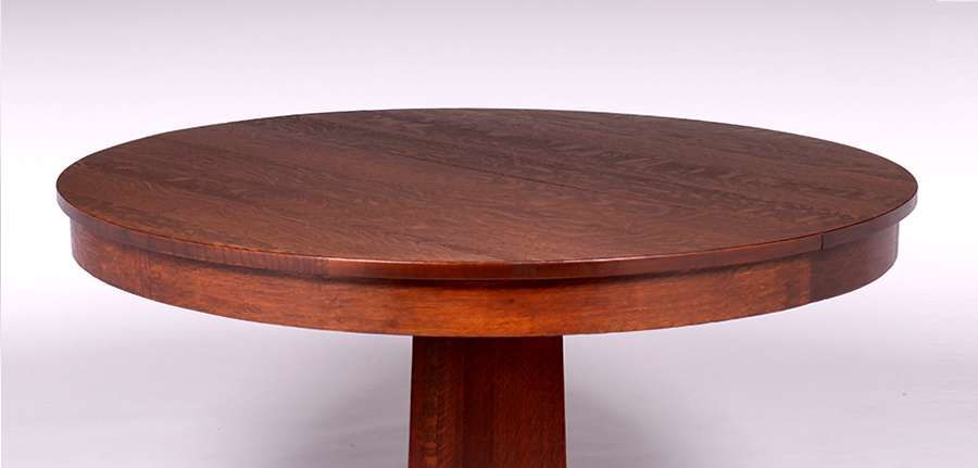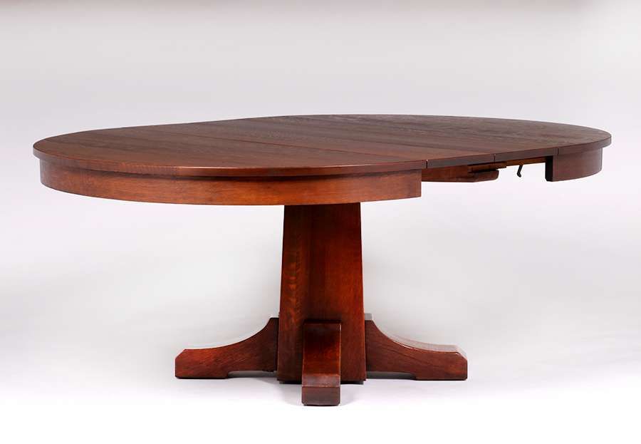 - L&JG Stickley 54"d Dining Table with 8 Original Leaves c1907-1912