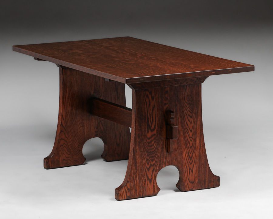 - L&JG Stickley 60"w Mouse-Hole Trestle Table c1910