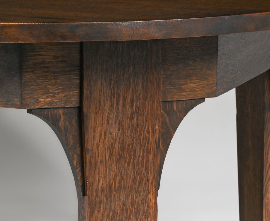 L&JG Stickley – Onondaga – Tobey Fixed-Top Dining Table c1901-1902. This is the Tobey variation of the early Gustav Stickley #418 Dining Table. Tobey had previously been marketing Gustav Stickley's New Furniture in 1900, but Gustav Stickley severed the relationship since Tobey was selling Gustav Stickley's Furniture as Tobey. Gustav's brothers, Leopold and John George, stepped in and started making the Tobey Furniture. Unsigned. Excellent original finish. 60"d x 30″h SOLD