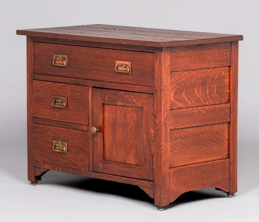 Pair L&JG Stickley Onondaga Wash Stands c1902-1904. Unsigned. Very nicely refinished. Originally would have had a towel rack. This model almost never surfaces. 34.75"w x 26.75"h x 18.75"d SOLD