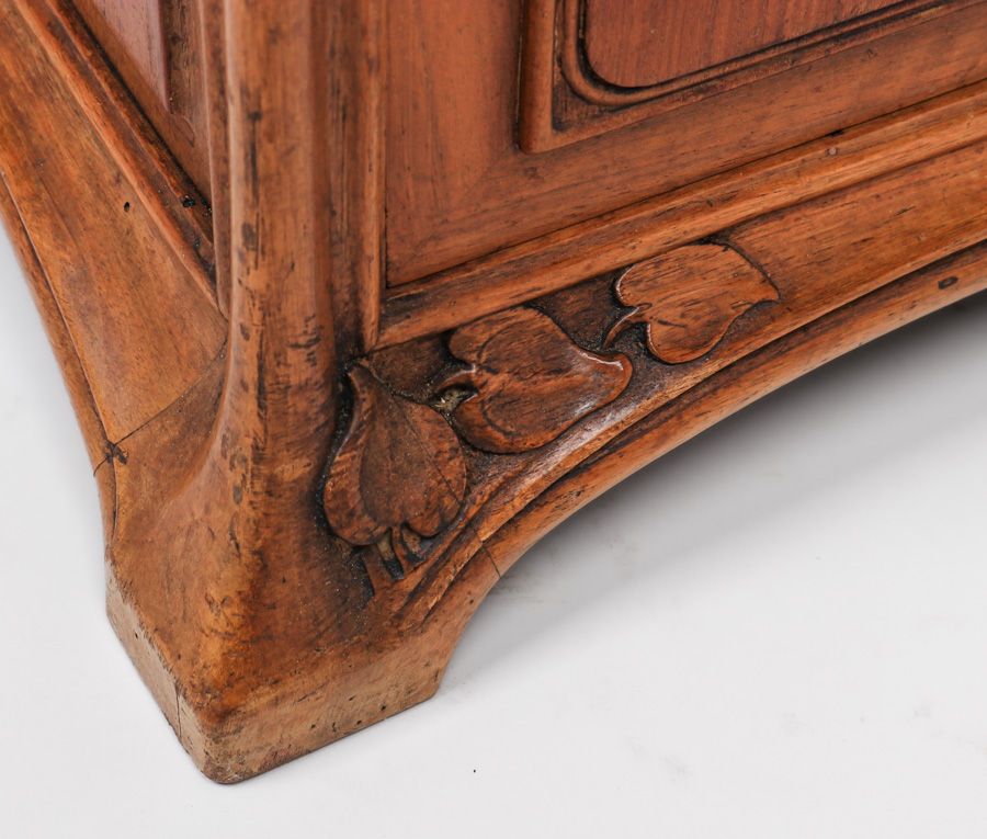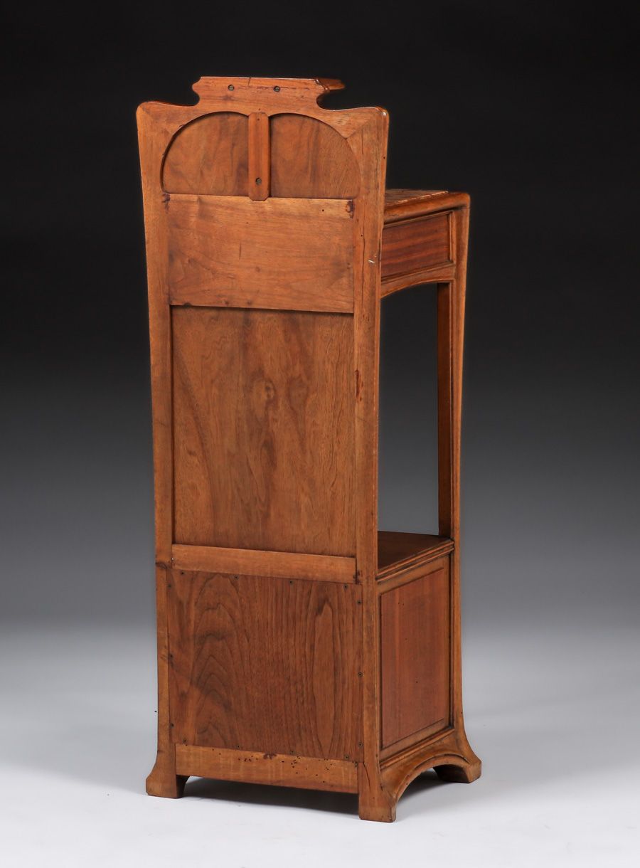 Louis Majorelle French Art Nouveau Marbletop Beside Table c1900. Signed. Excellent original finish. 41"h x 15"w x 12.25"d SOLD