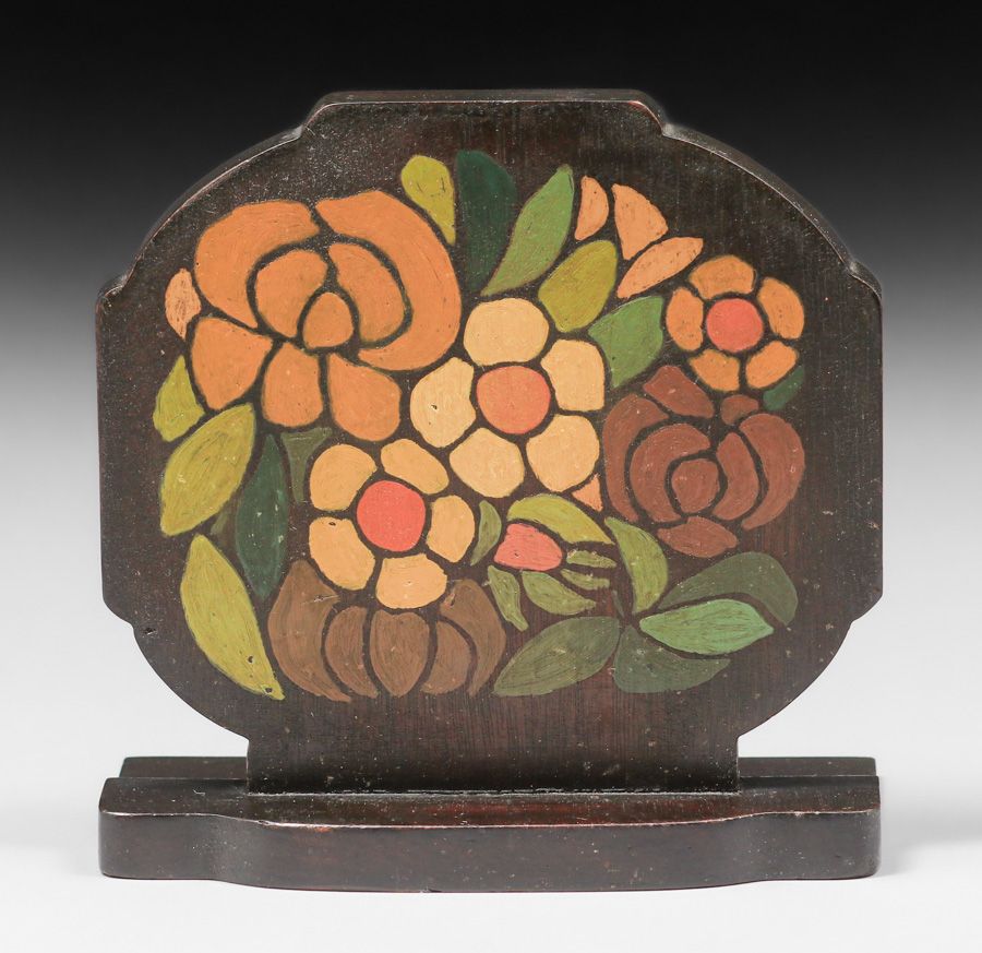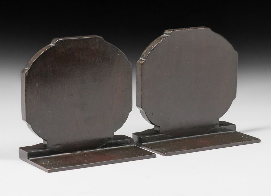 Mathews Furniture Shop -Arthur & Lucia Mathews Hand Painted Mahogany Bookends c1910s. Unsigned. Excellent original condition. 5 3/8"h x 5.5"w $7500 pair