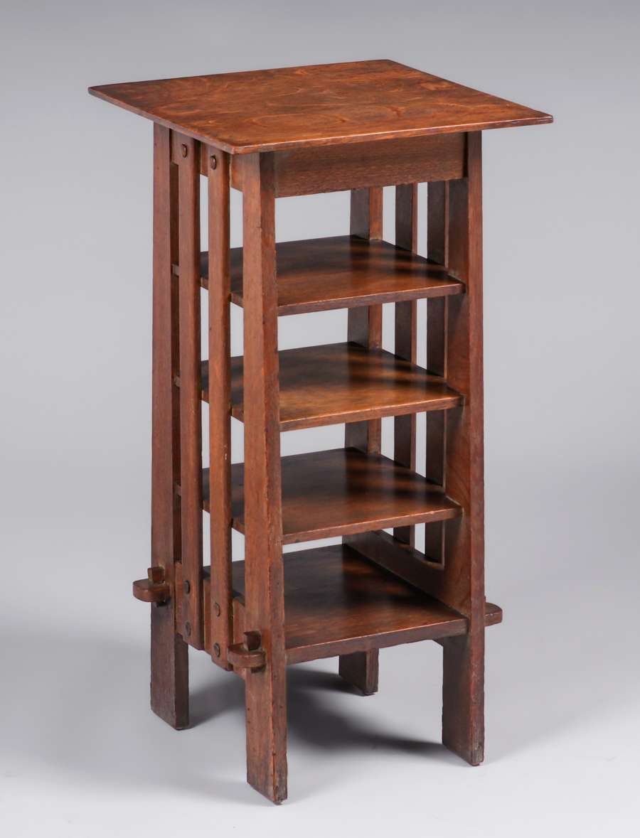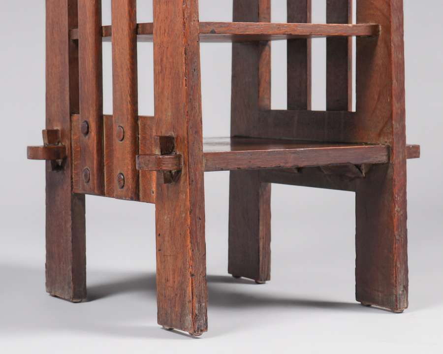Michigan Chair Co Oak Slatted Magazine Stand c1905. Signed. Excellent original grey wash finish. Very sturdy. 32.25″h x 16.5″ x 16.5″ $2200