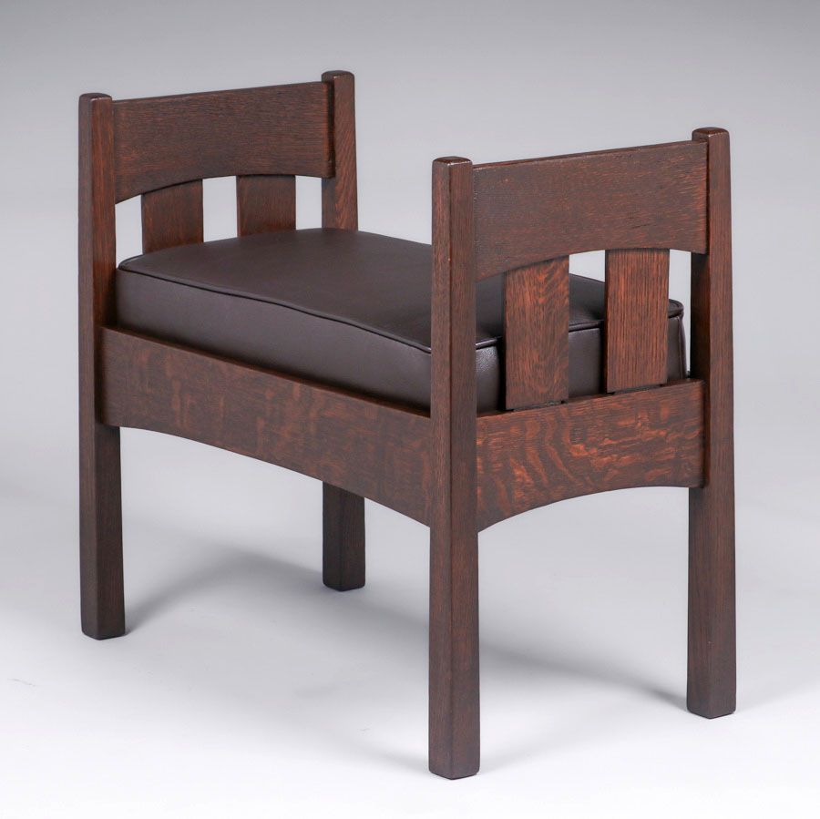 Michigan Chair Co Slatted Reverse-Tapered Window Seat c1910. Signed. Very nicely refinished. 31.75"w x 16 5/8"d x 27.25"h SOLD