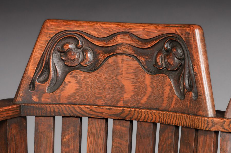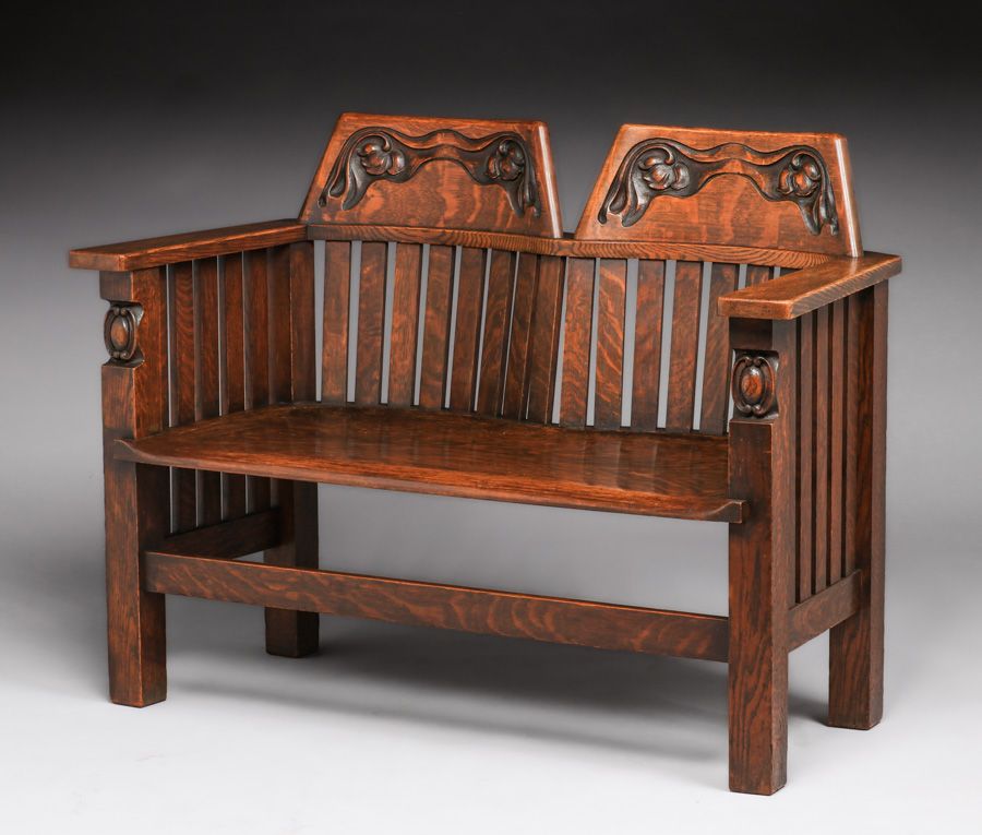 - David Kendall – Phoenix Furniture Co #772 Carved Oak Bench c1895