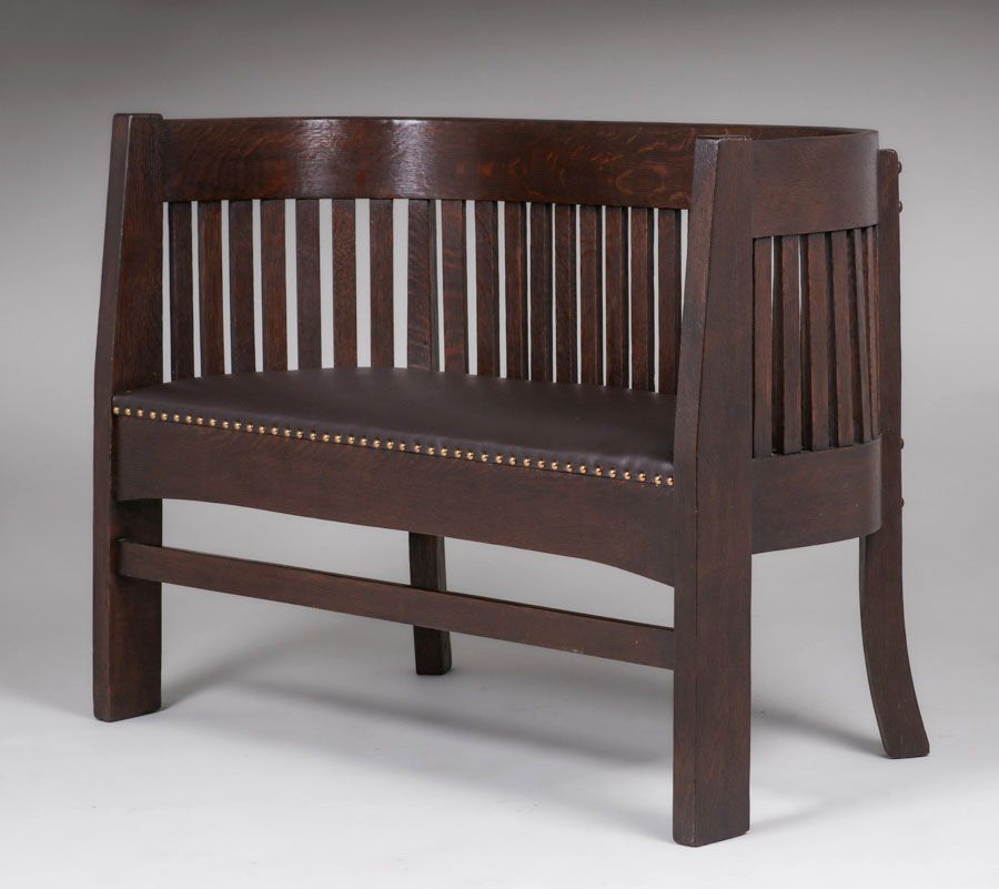- Plail Brothers Furniture Co Prairie School Barrel-Back Settle c1905