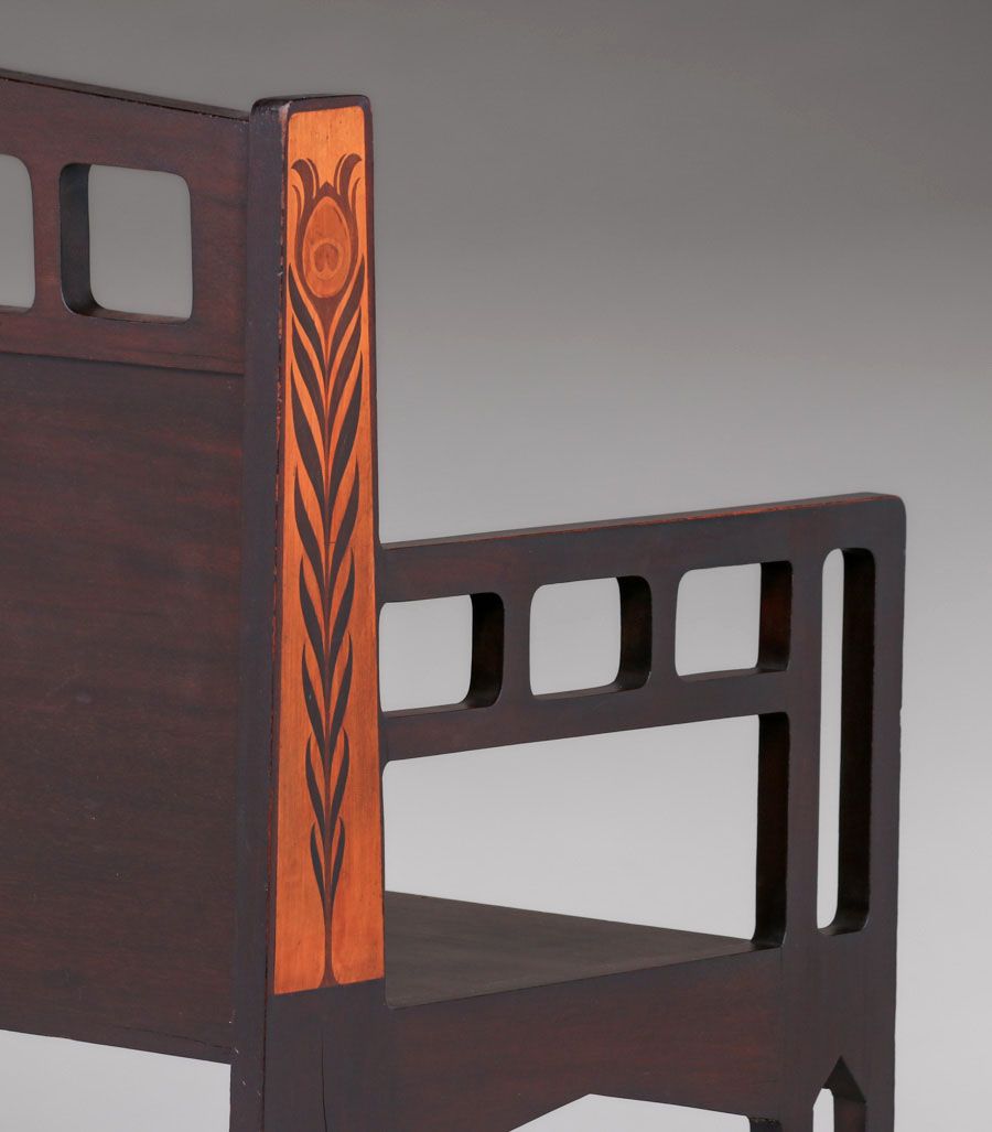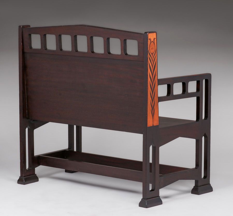 - Shop of the Crafters - Cincinnati, Ohio Inlaid Cutout Mahogany Hall Bench c1905