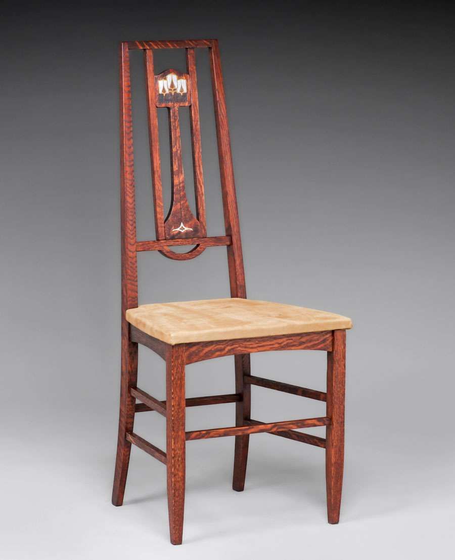 - Early Stickley Brothers Inlaid Side Chair c1901
