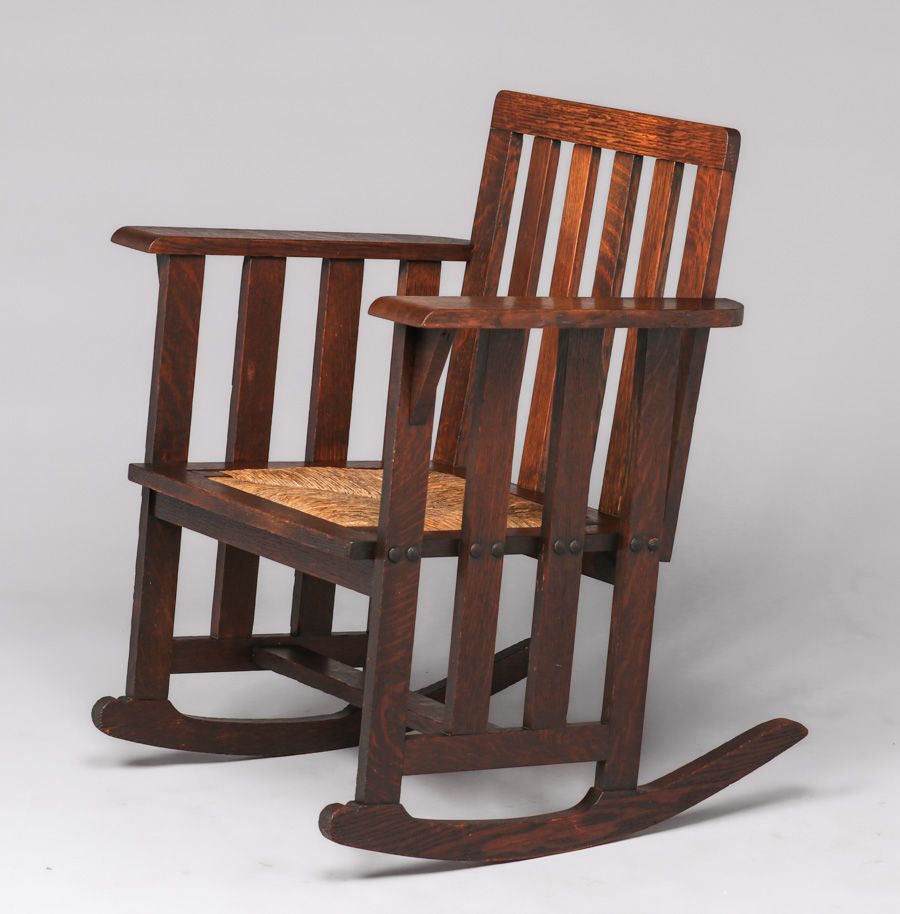 - Early Stickley Brothers Slatted Rocker c1902