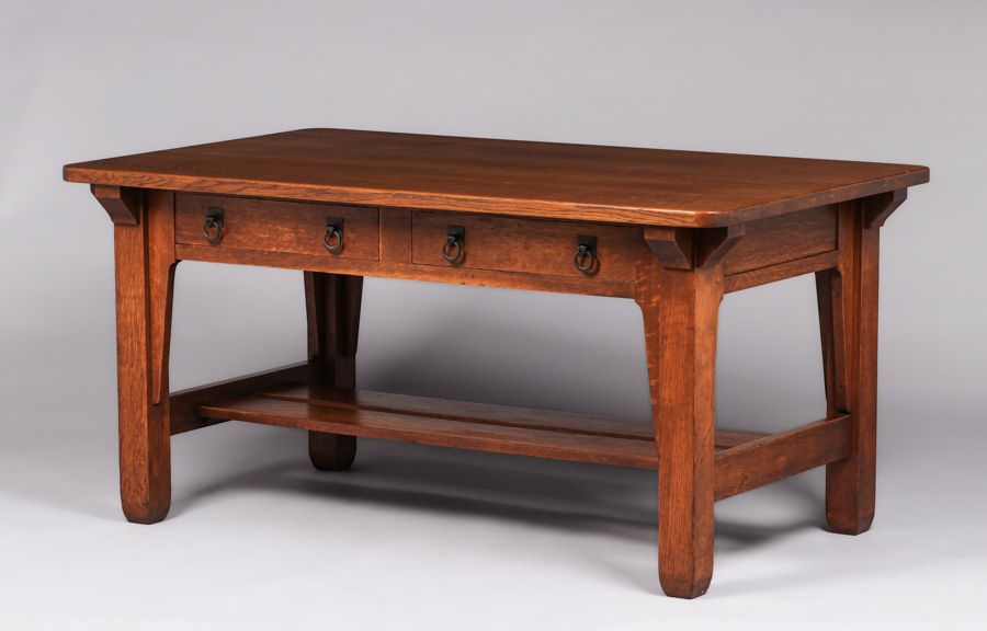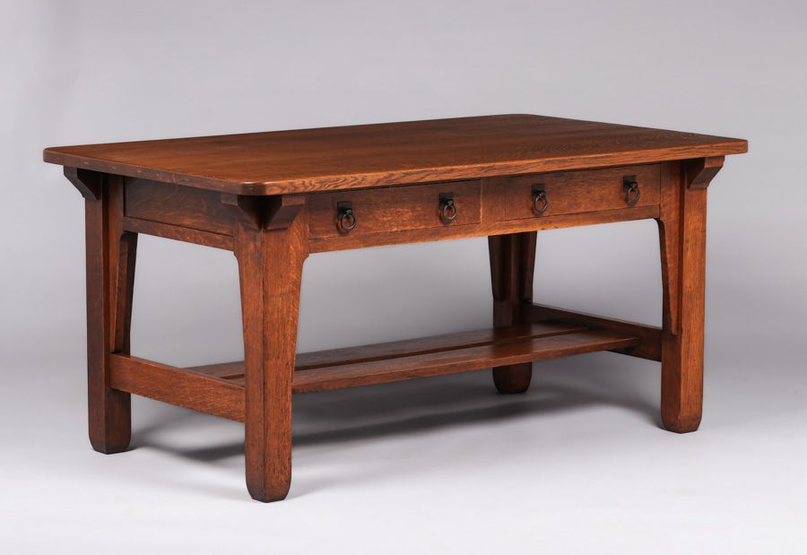- Large Stickley Brothers Two-Drawer Library Table c1910