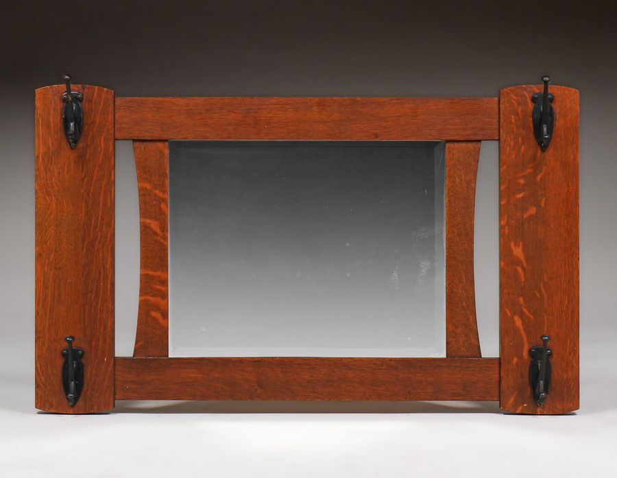 - Stickley Brothers #1291 Oak Hanging Hall Mirror c1910