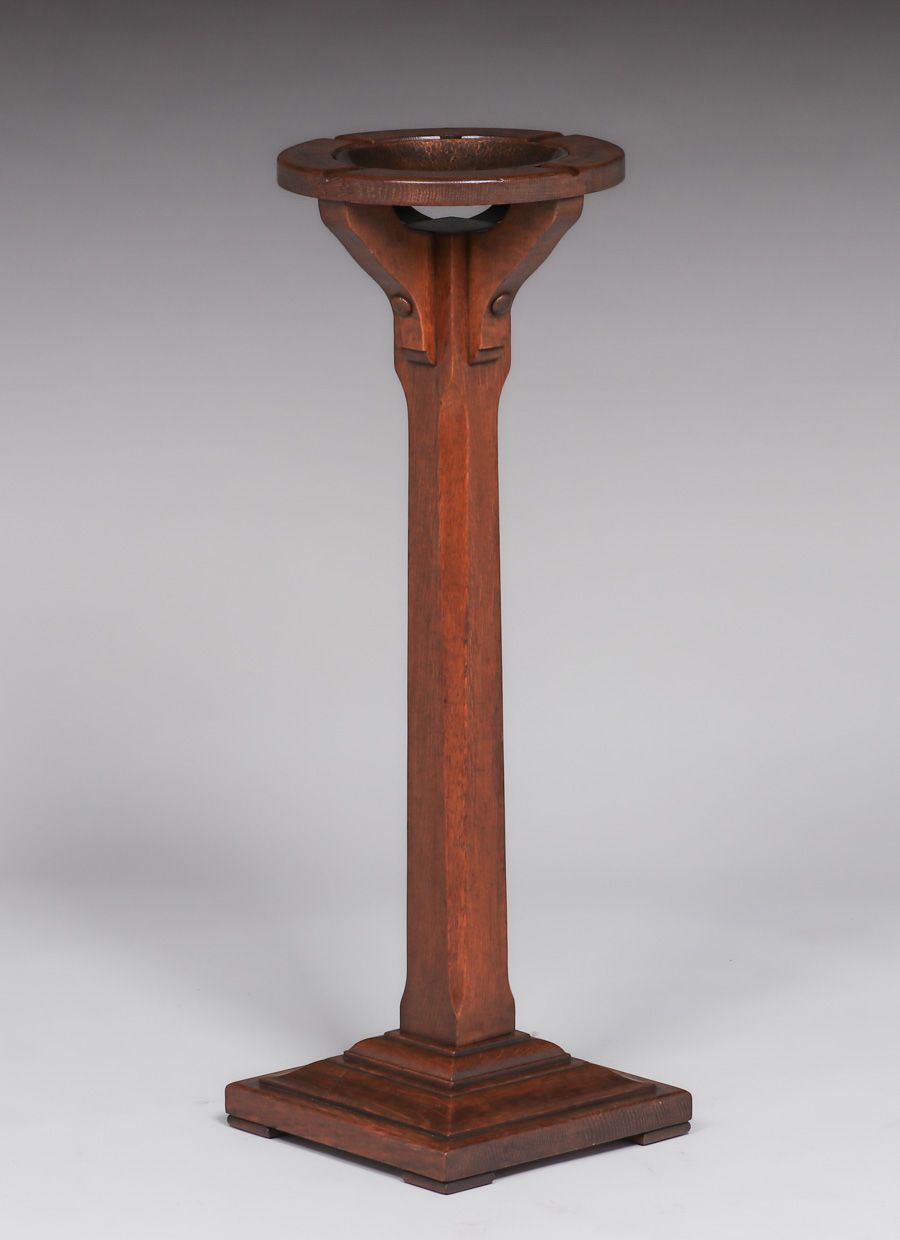 - Stickley Brothers #142 Prairie School Oak Standing Cigar Ashtray c1910