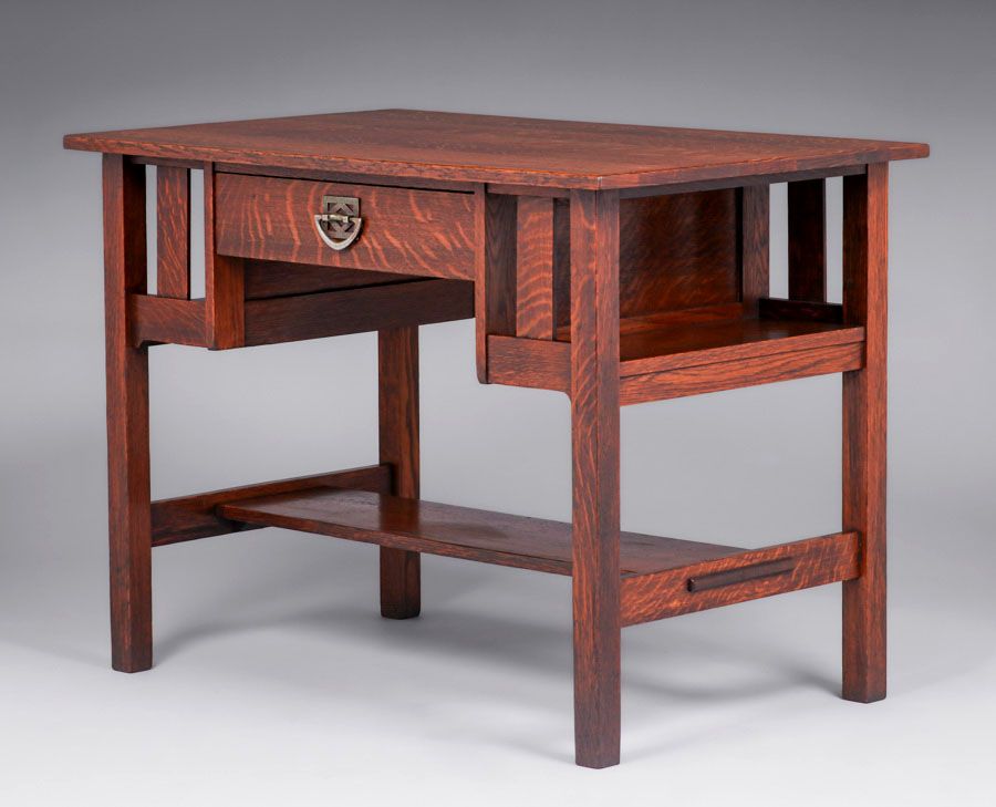 - Stickley Brothers #2810 One-Drawer Bookshelf Side Desk c1910