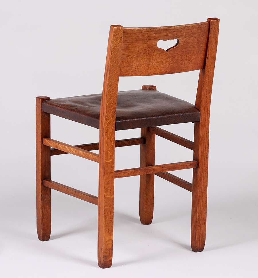 Stickley Brothers vanity chair with heart cutout handle. Unsigned. Excellent original finish and original leather. Very sturdy. 29"h x 16.5"w x 15"d SOLD