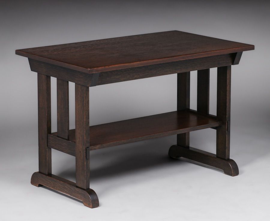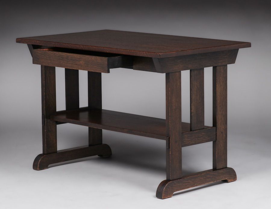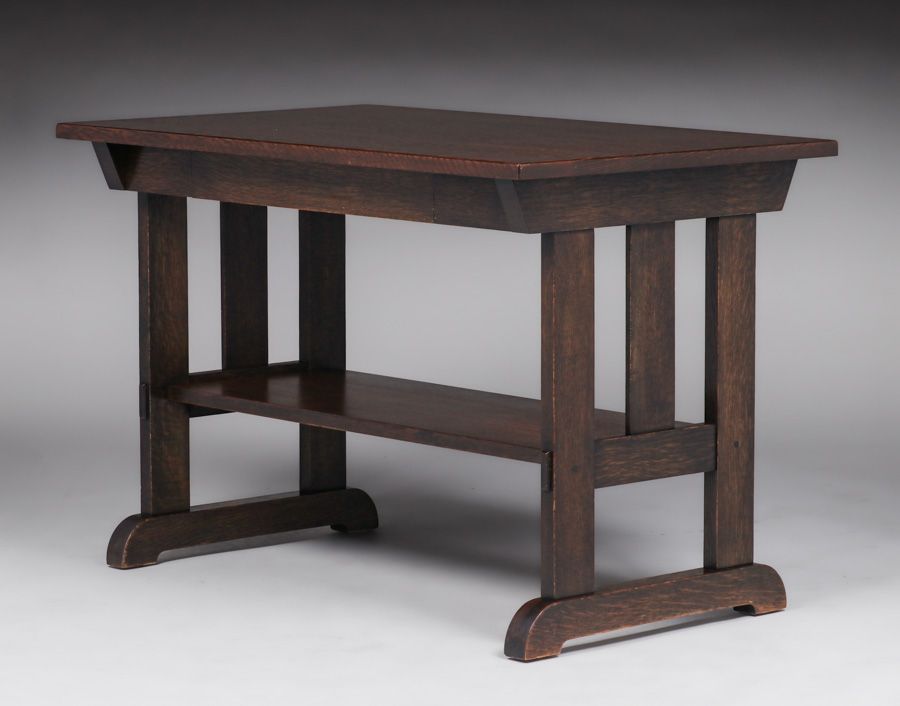 - Stickley Brothers Prairie School One-Drawer Trestle Table c1905