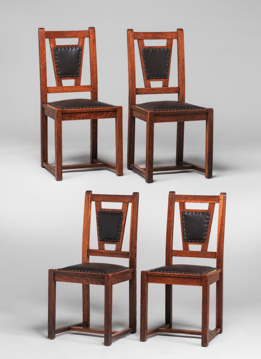 - Stickley Brothers Set of 4 Prairie School Dining Chairs c1915