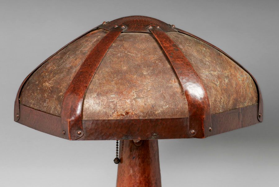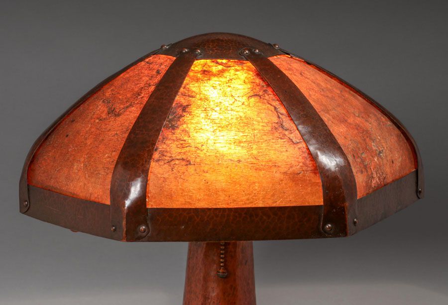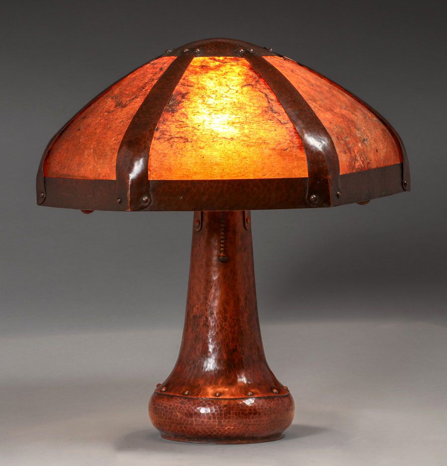 - Extremely Rare B&M Shop Hammered Copper & Mica Rivetbase Lamp c1909-1910
