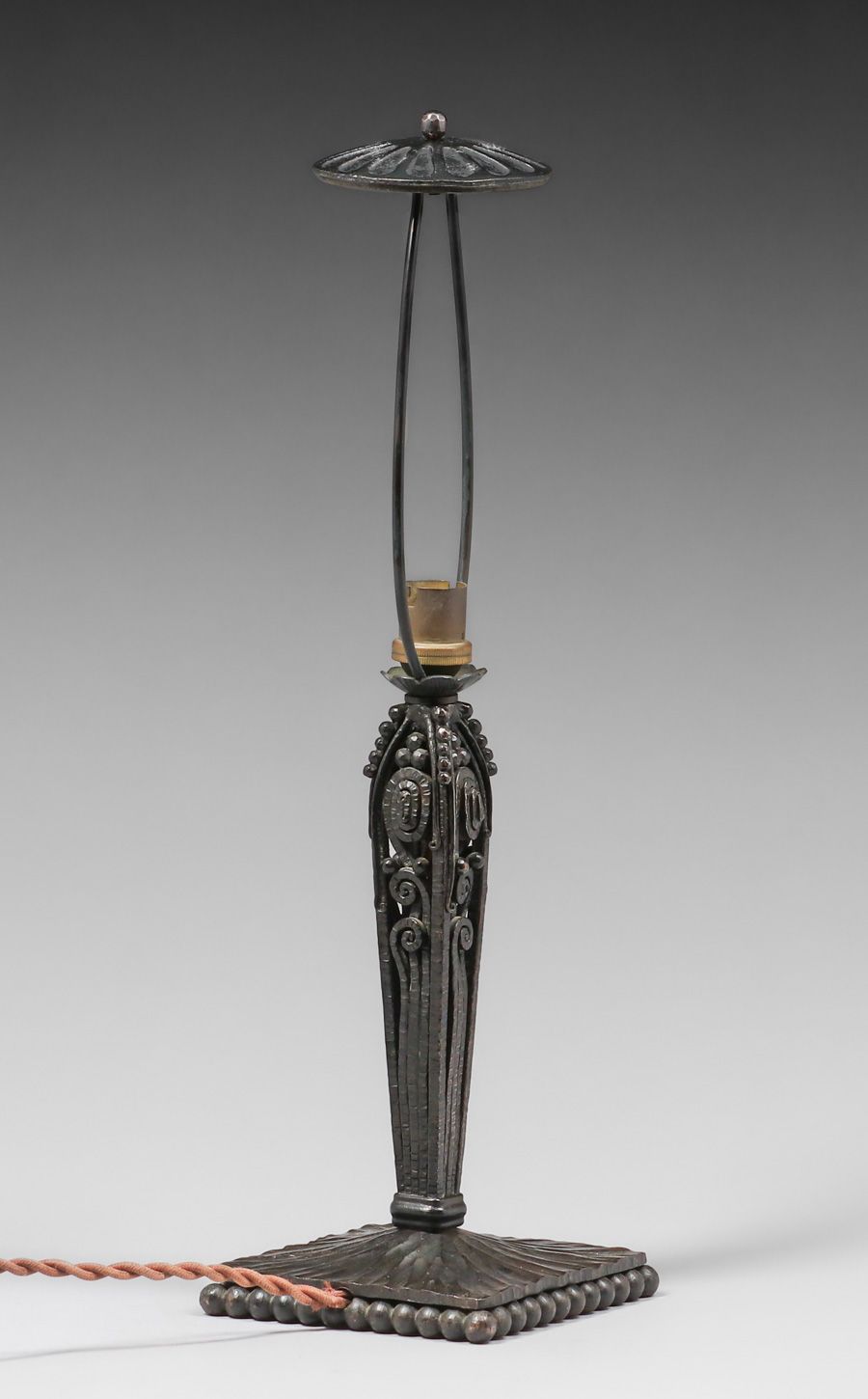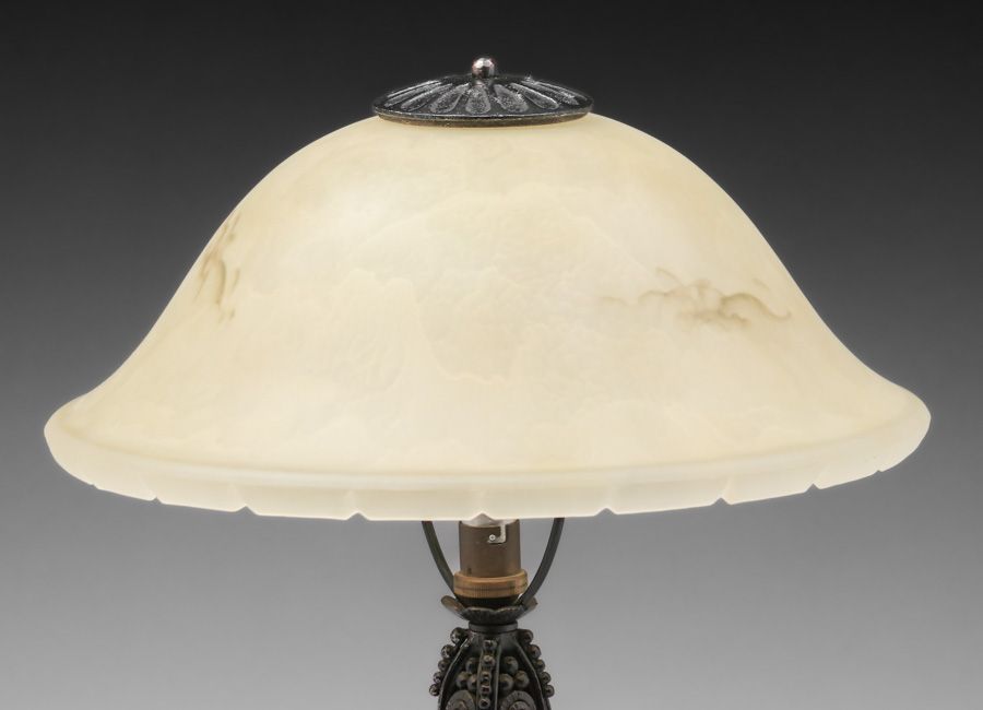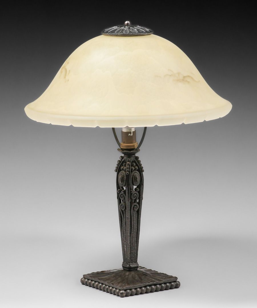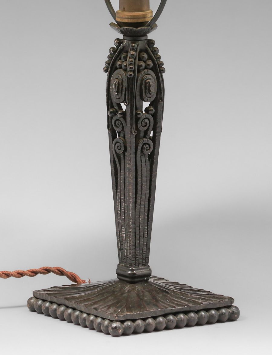 - Edgar Brandt - French Art Deco Iron & Art Glass Lamp c1920s