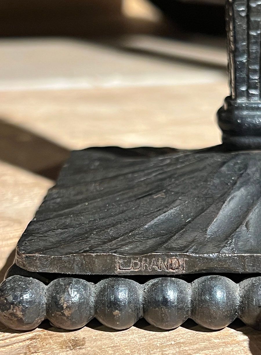 Edgar Brandt - French Art Deco Iron & Art Glass Lamp c1920s. Signed. Excellent original patina. Original glass shade in perfect condition. 17"h x 13.5"d SOLD