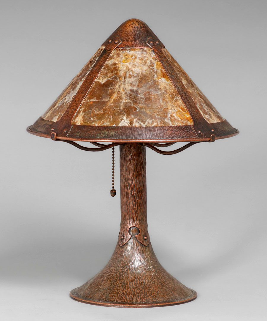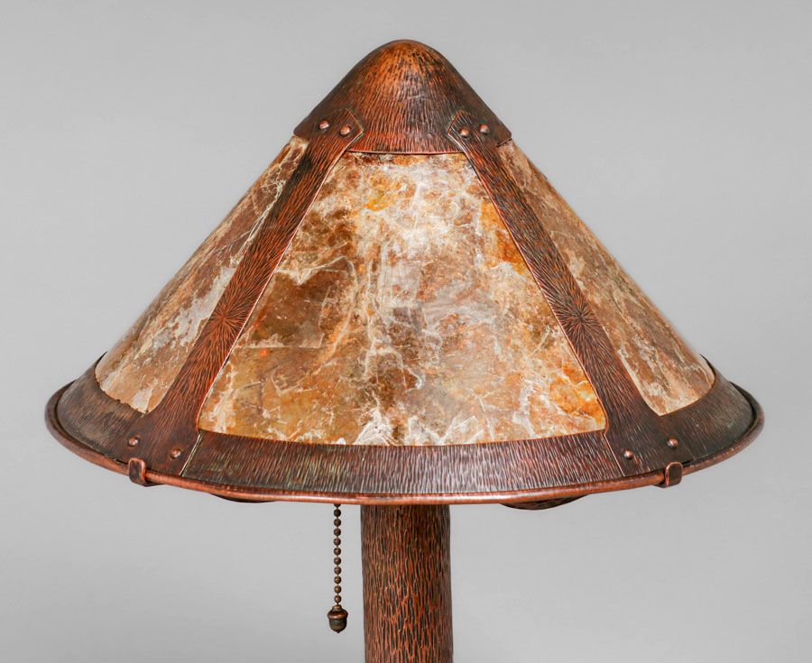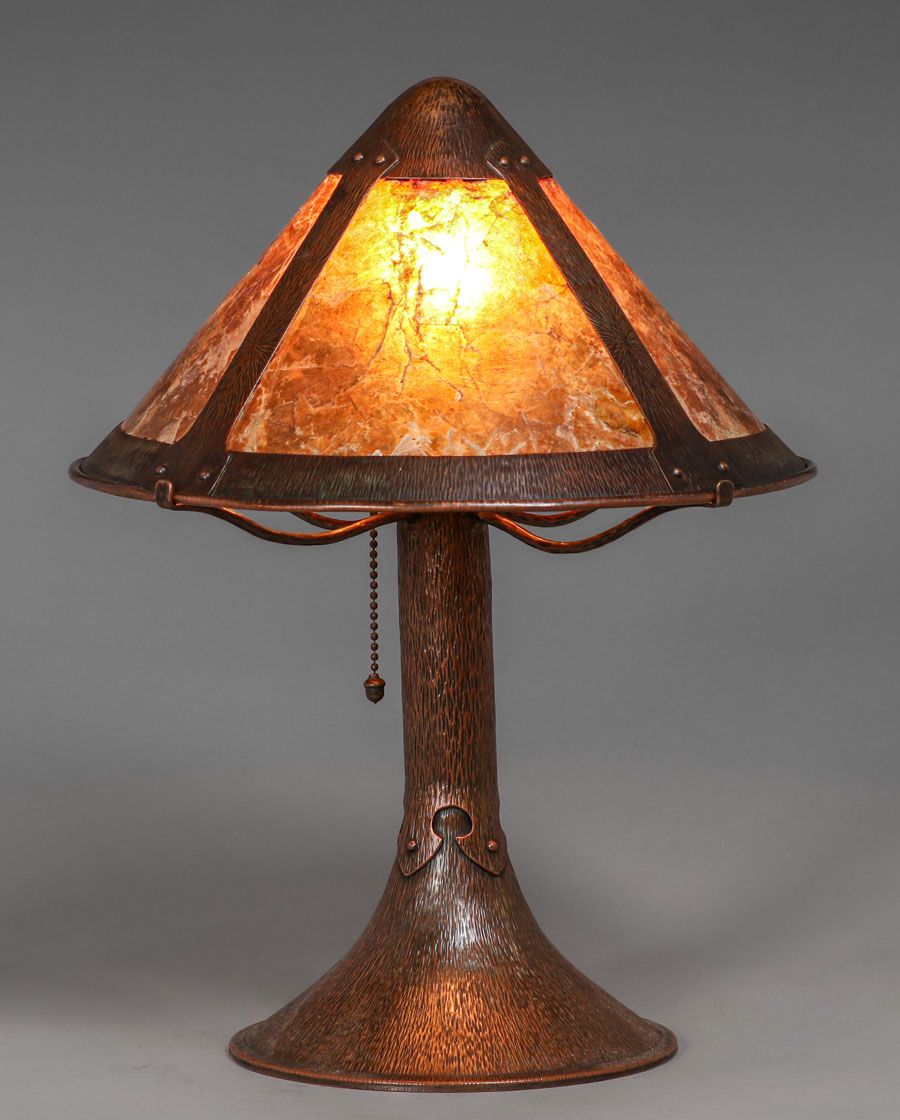 - Fred Brosi Ye Olde Copper Shoppe Hammered Copper & Mica Lamp c1915