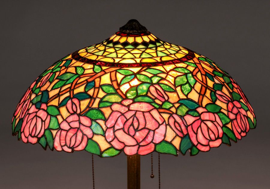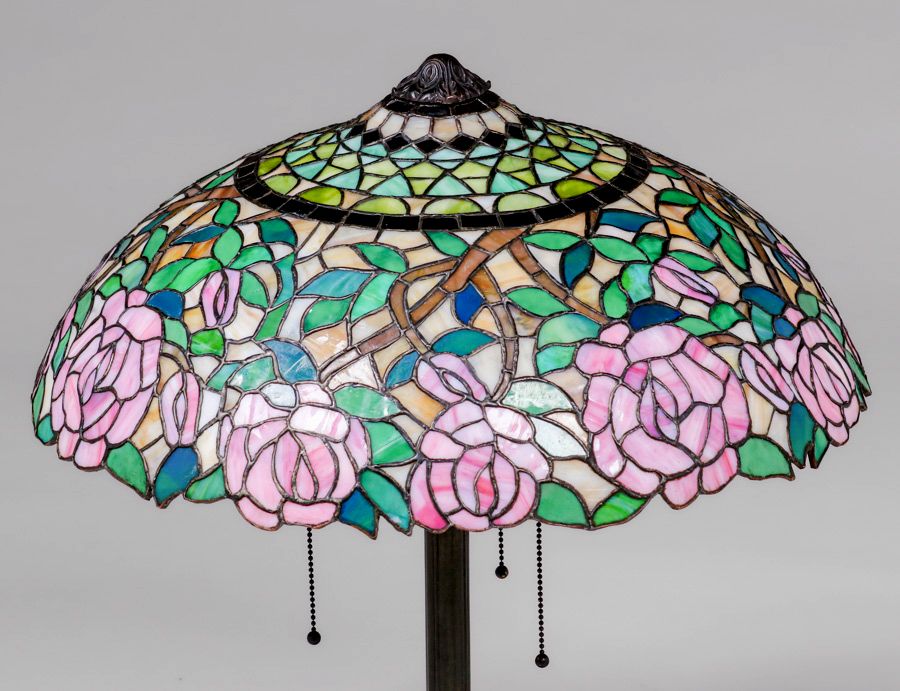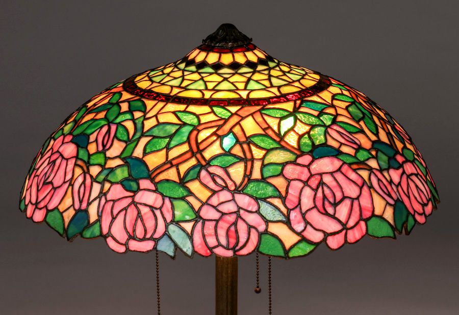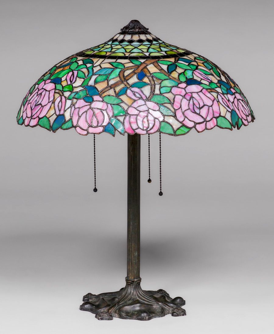 - Gorham Rose Medallion Leaded Glass Lamp c1905
