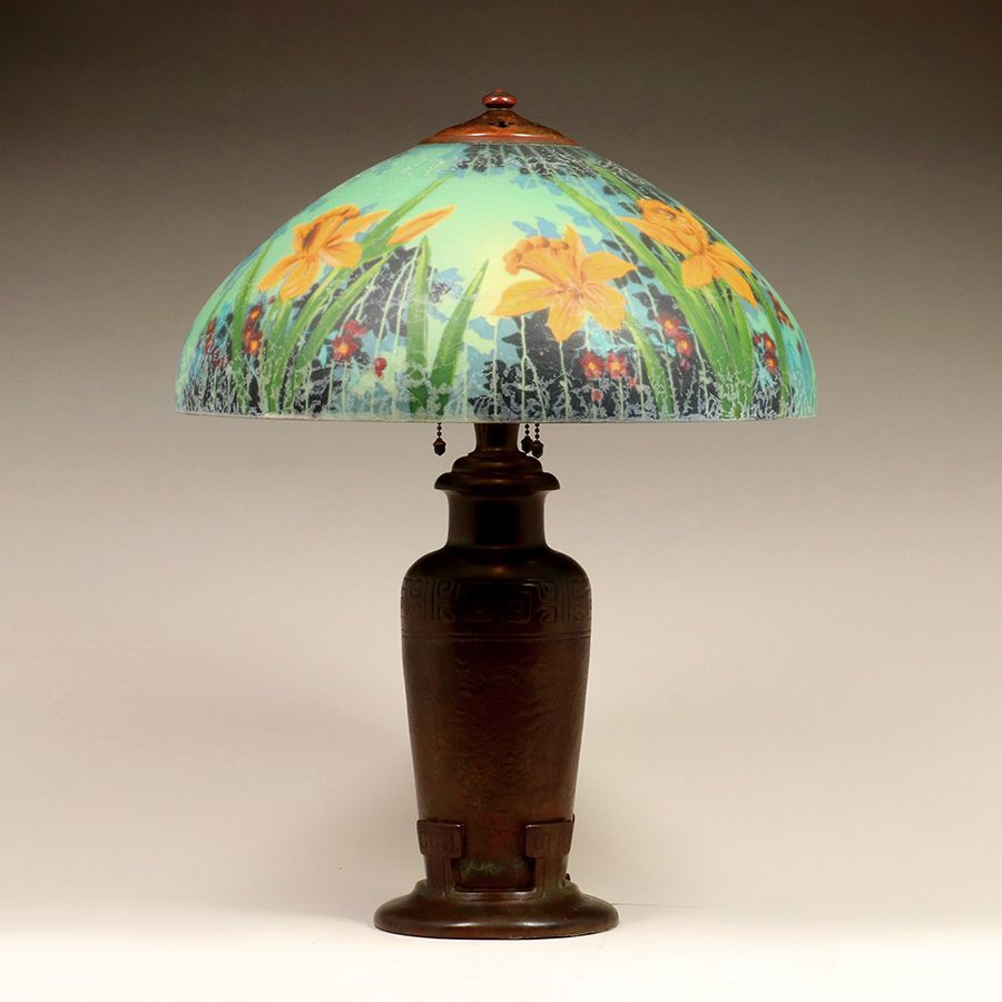 - Handel #7122 Reverse-Painted Yellow Daffodil Lamp c1910