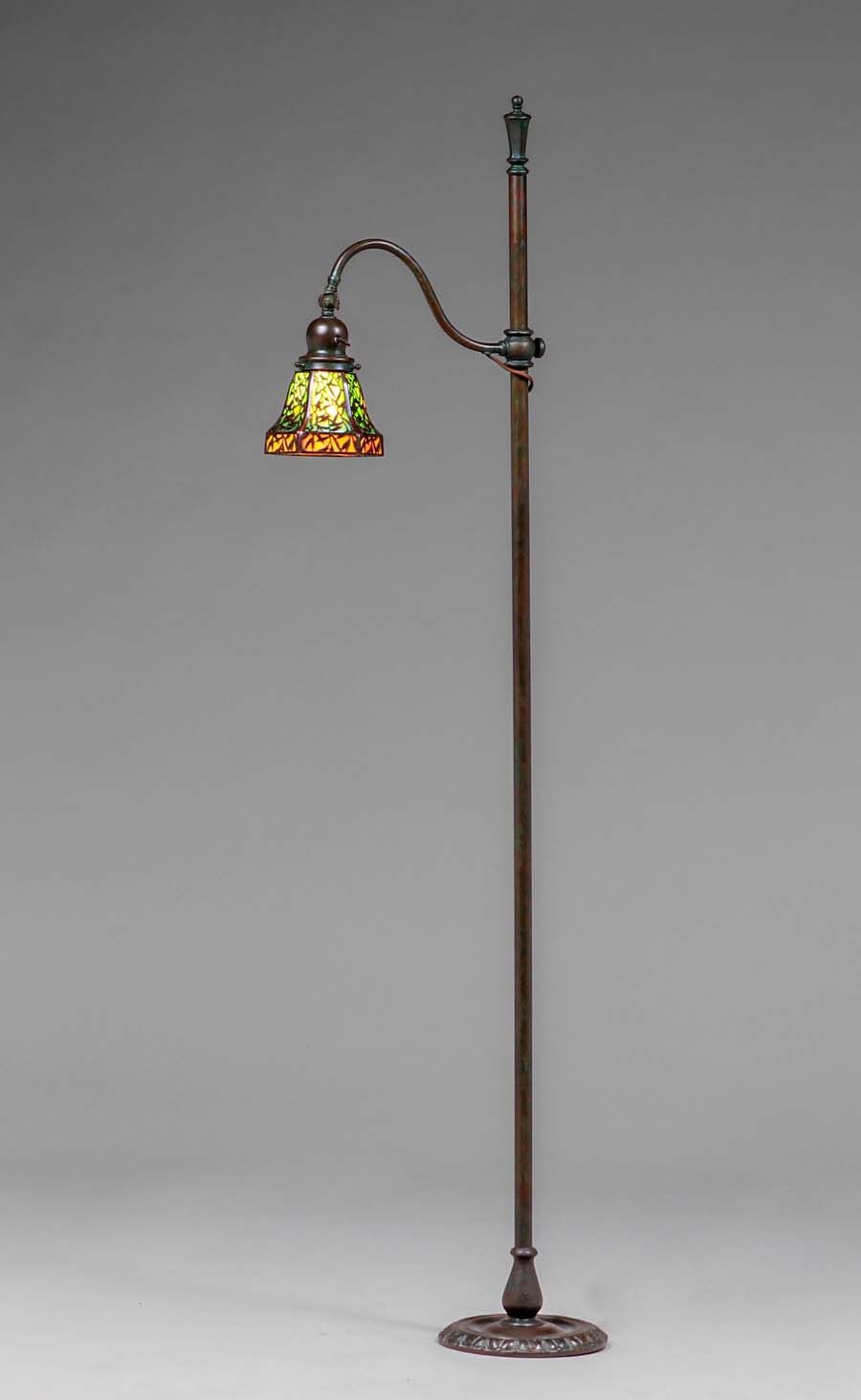 Handel Bamboo Leaf Overlay Adjustable Floor Lamp c1910. Signed. Excellent original patina. Original glass in perfect condition. 50.75"h x 17" depth x 8"d base SOLD