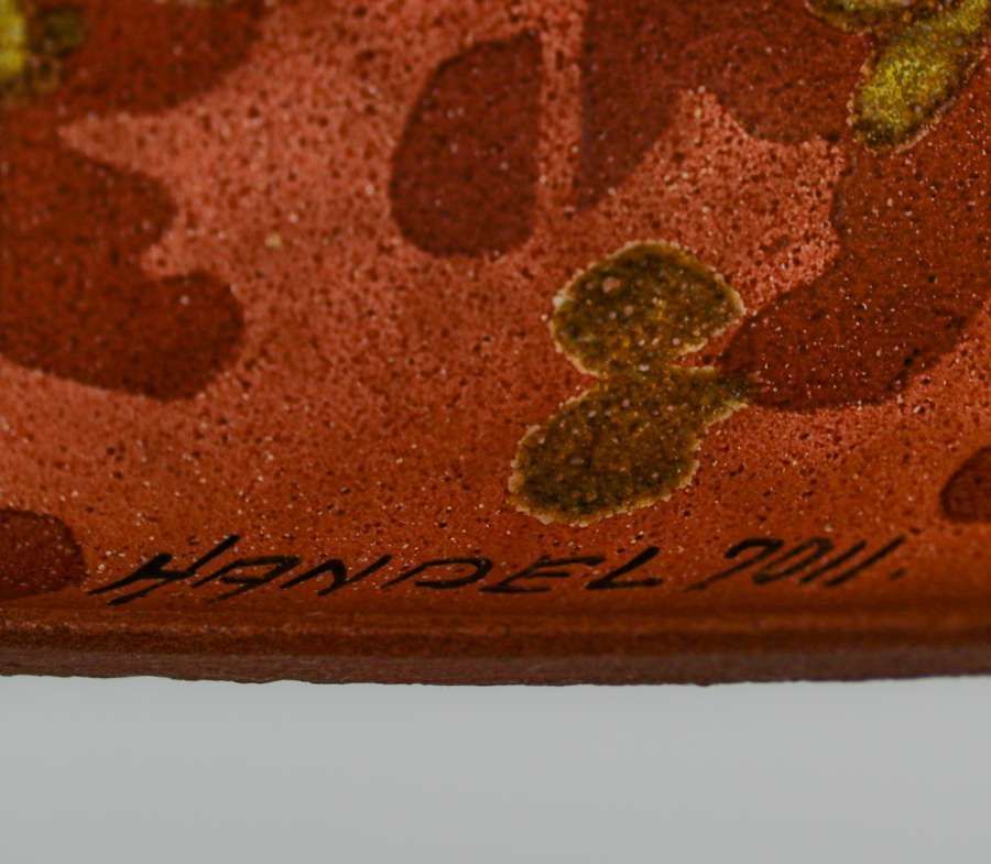Handel Reverse-Painted Butterfly Boudoir Lamp c1920. Signed. Excellent original patina. Original glass shade in near pristine condition. 14"h x 8.5"d SOLD