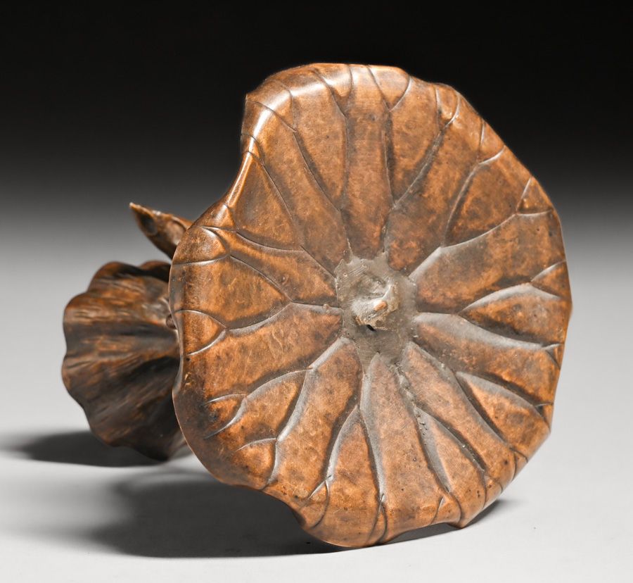 Leonide Lavaron – Chicago Copper Candlestick c1905-1910. Lavaron was inspired by and seems to have copied many designs and forms from Elizabeth Burton of Santa Barbara. Unsigned. Excellent new patina. 3.75"h x 4.5" x 4" SOLD