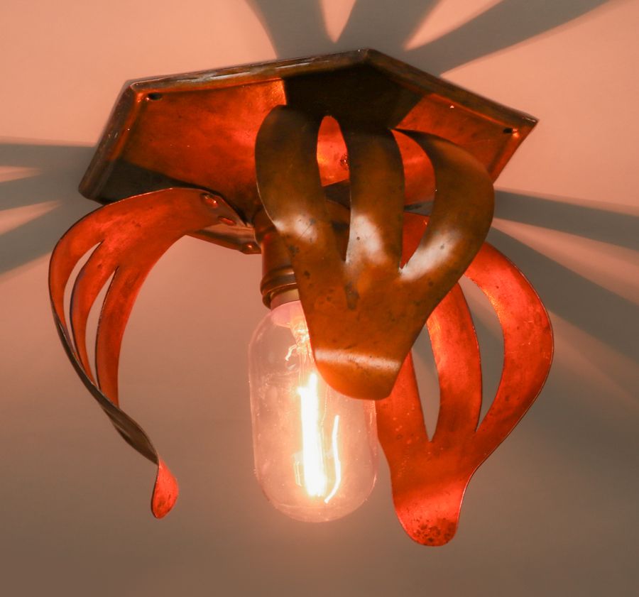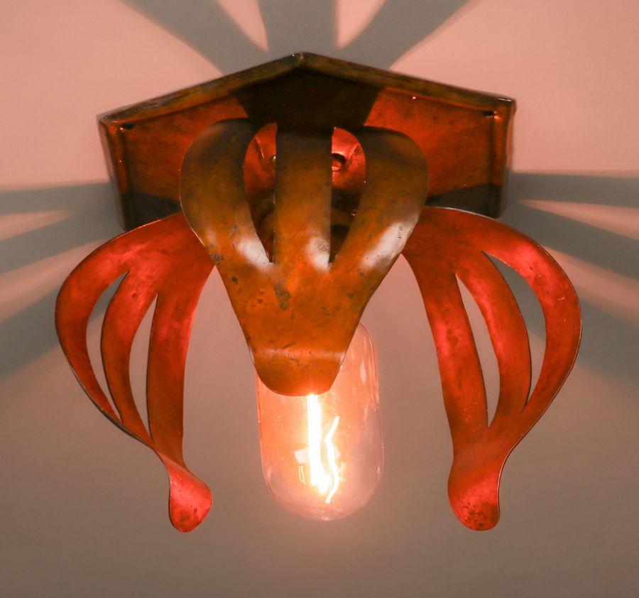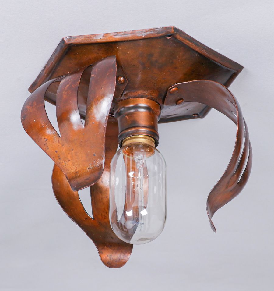 - Lillian Palmer Hammered Copper Cutout Ceiling Light c1909