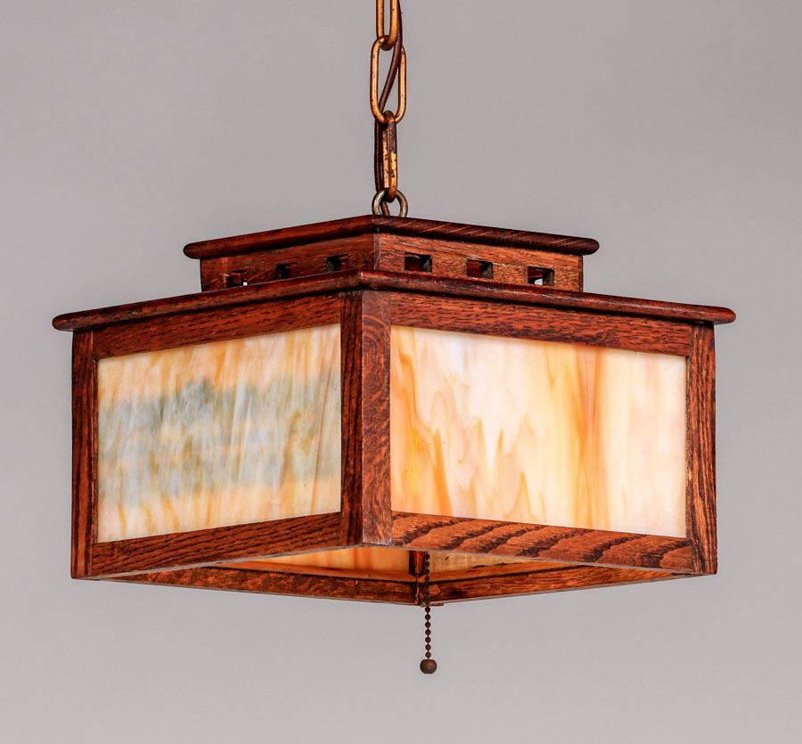 - Peterson Art Furniture Co – Faribault, MN Oak & Slag Glass Prairie School Hanging Lamp c1910