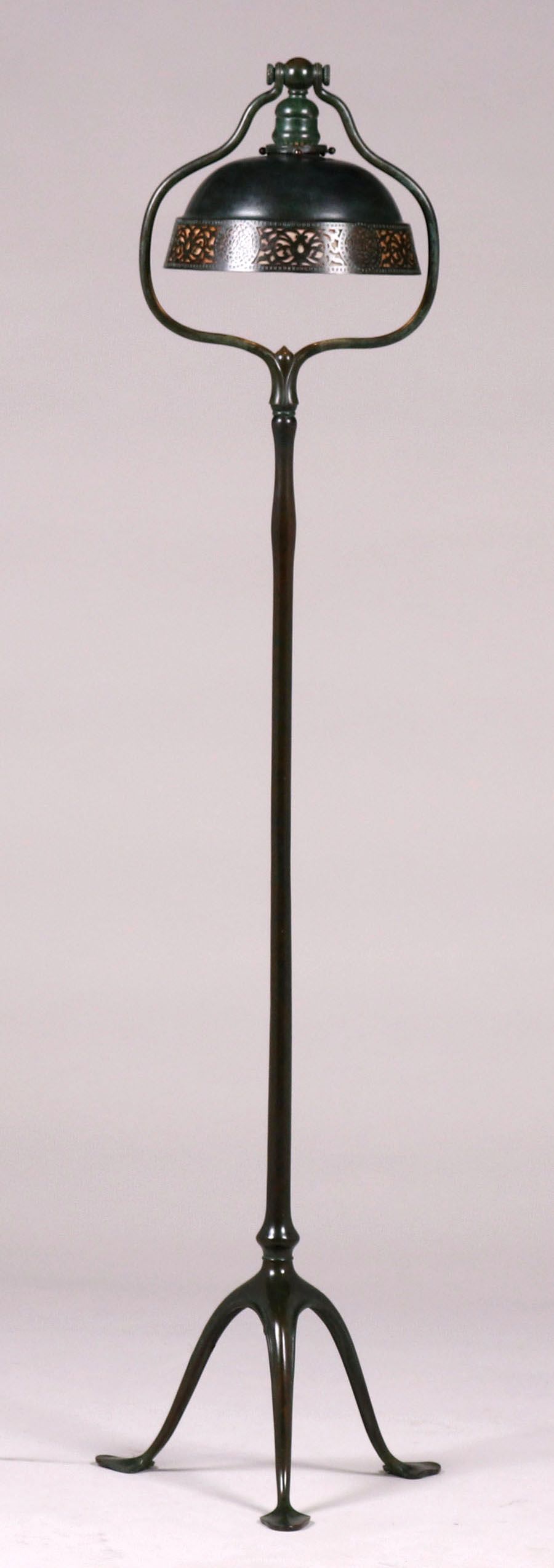 Tiffany Studios Bronze & Amber Glass Floor Lamp c1910. Signed. Excellent original patina and original glass. 56"h x 11.5" at top x 13.75"d at feet SOLD