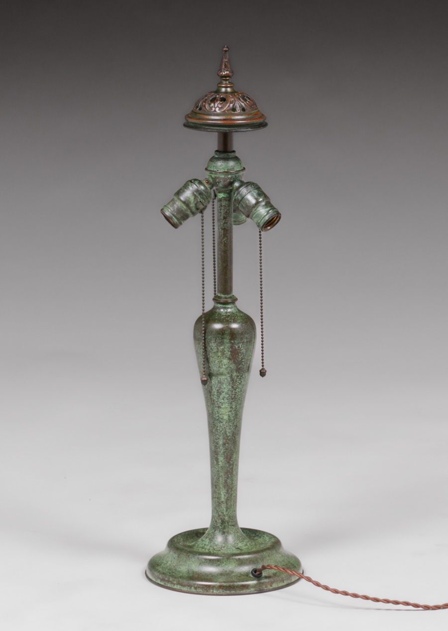 Large Unique – Brooklyn, NY Leaded Glass Lamp c1910. Unsigned. Excellent original patina. Original leaded glass in excellent condition. 27″h x 18.25″d