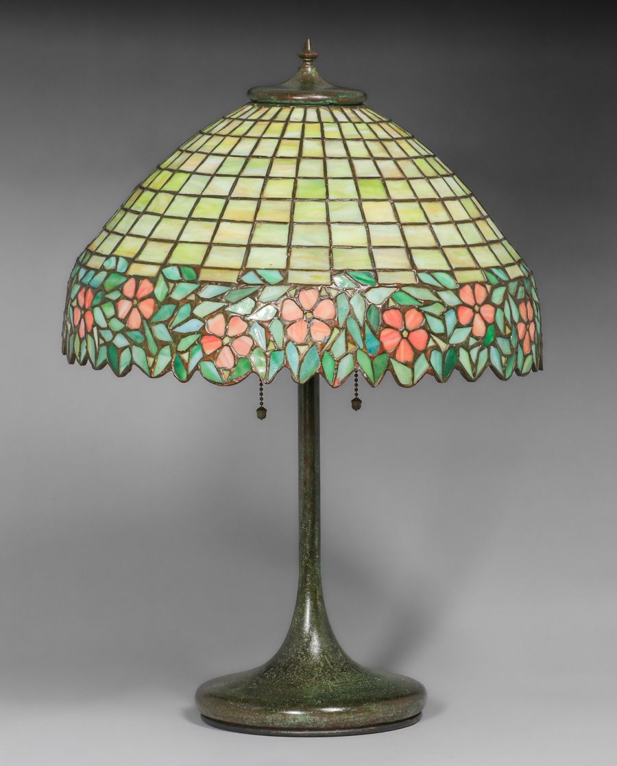- Unique Art Glass and Metal Company, Brooklyn, NY – Floral Leaded Glass Lamp c1910
