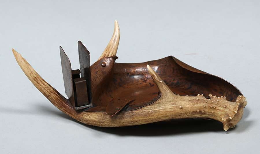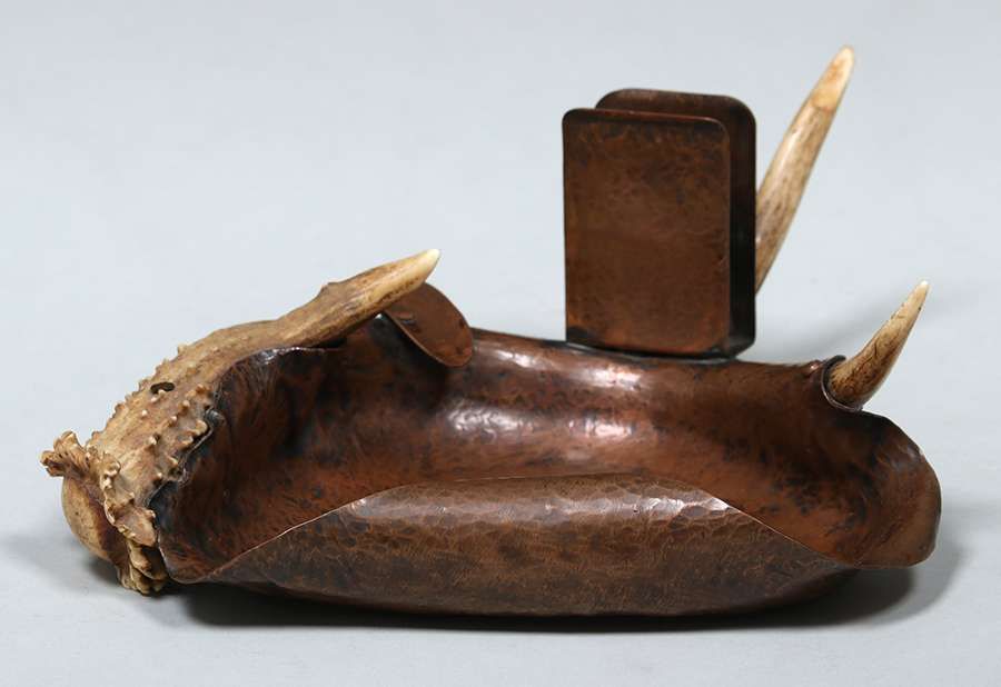- Albert Berry Hammered Copper Antler Cigar Ashtray c1920s