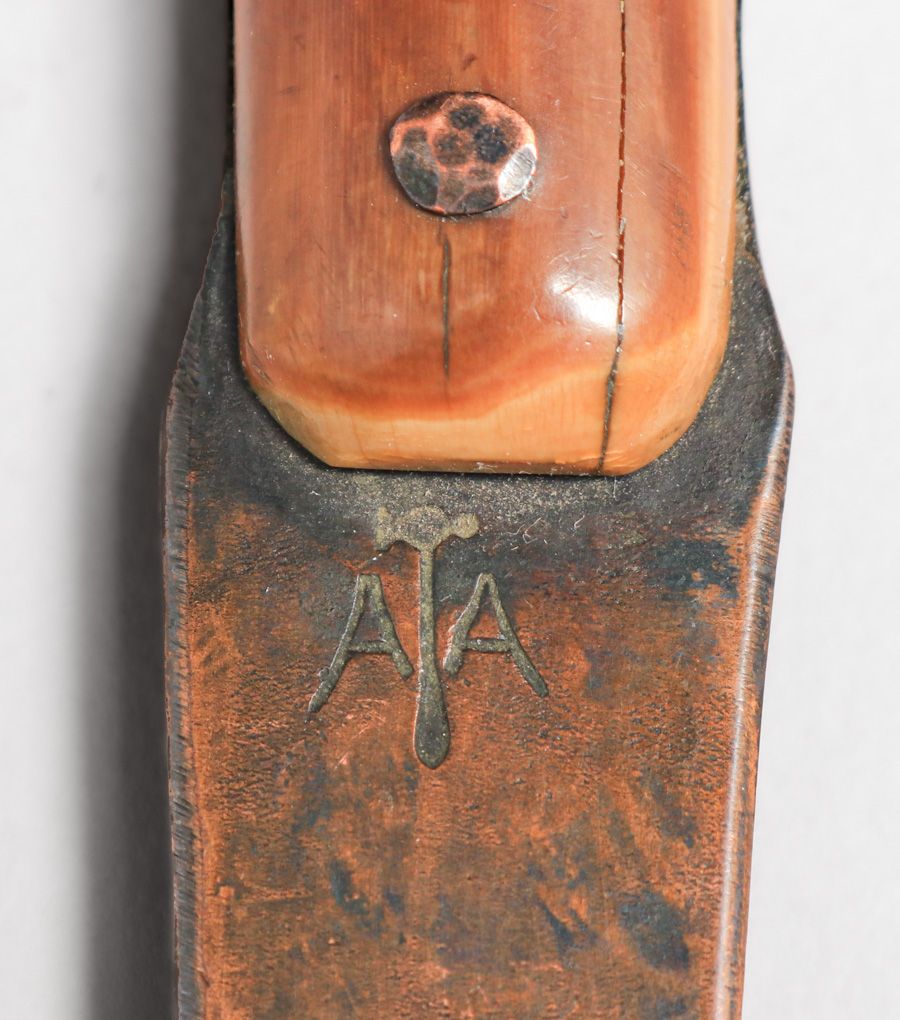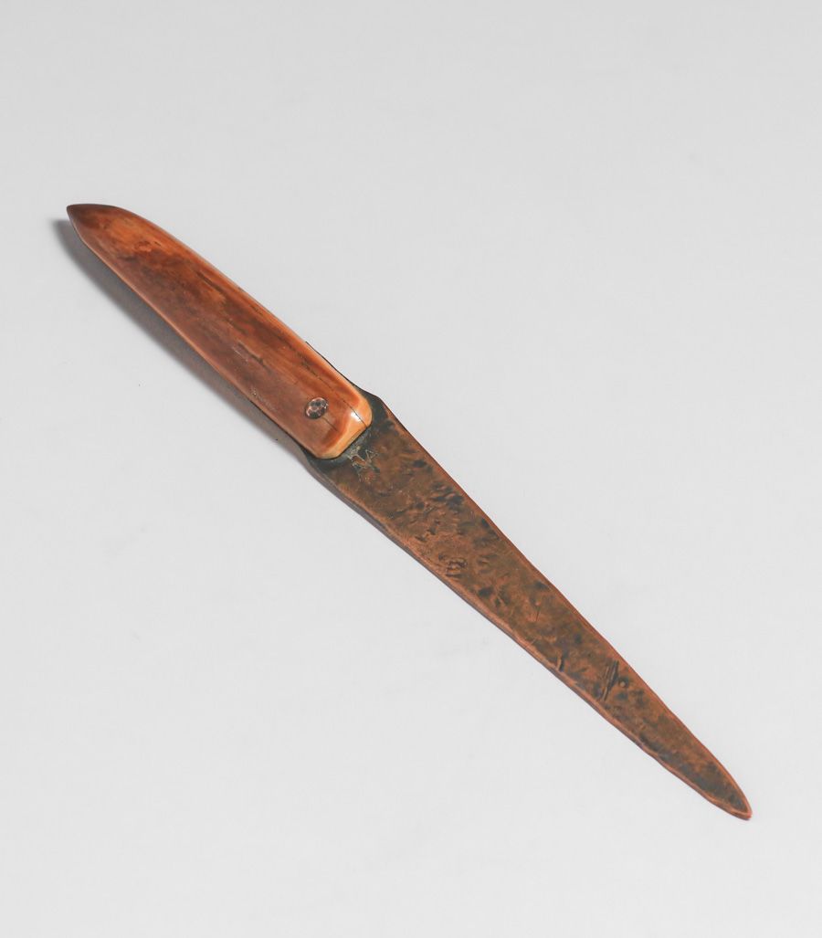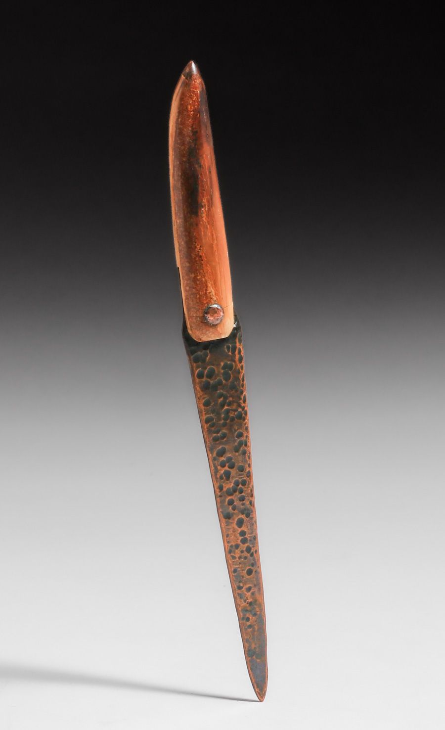 Albert Berry – Juneau, Alaska Hammered Copper Paper Knife c1910. Signed with the “AA” Alaska Artisans mark. Excellent original patina. 8.5” long SOLD