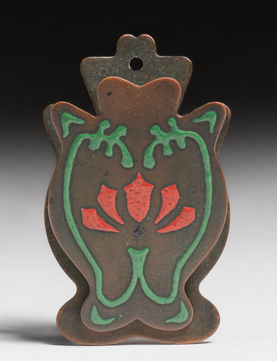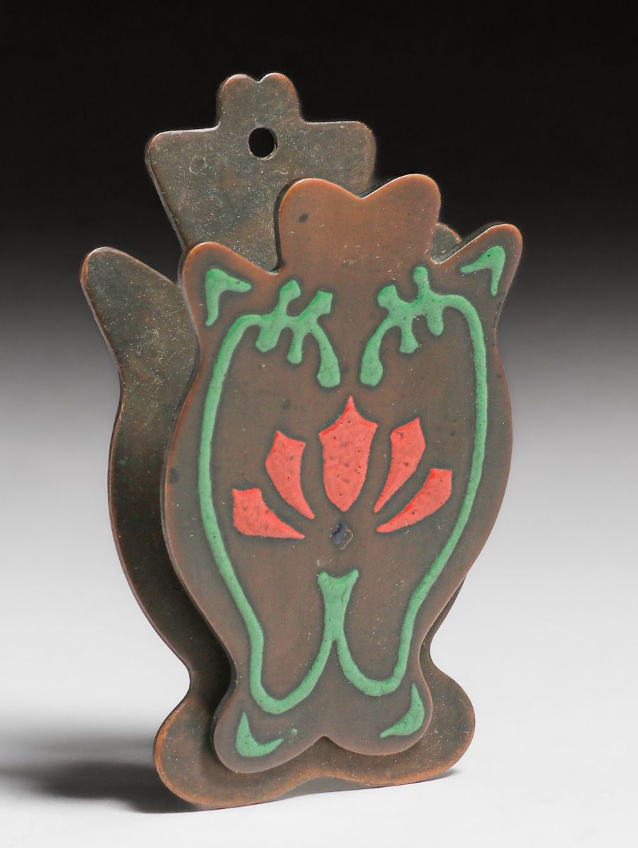 Art Crafts Shop - Buffalo, NY #1004 Copper & Enamel Paper Clip c1905. Signed. Excellent original patina. Original enamel in excellent condition. 5" x 3" SOLD