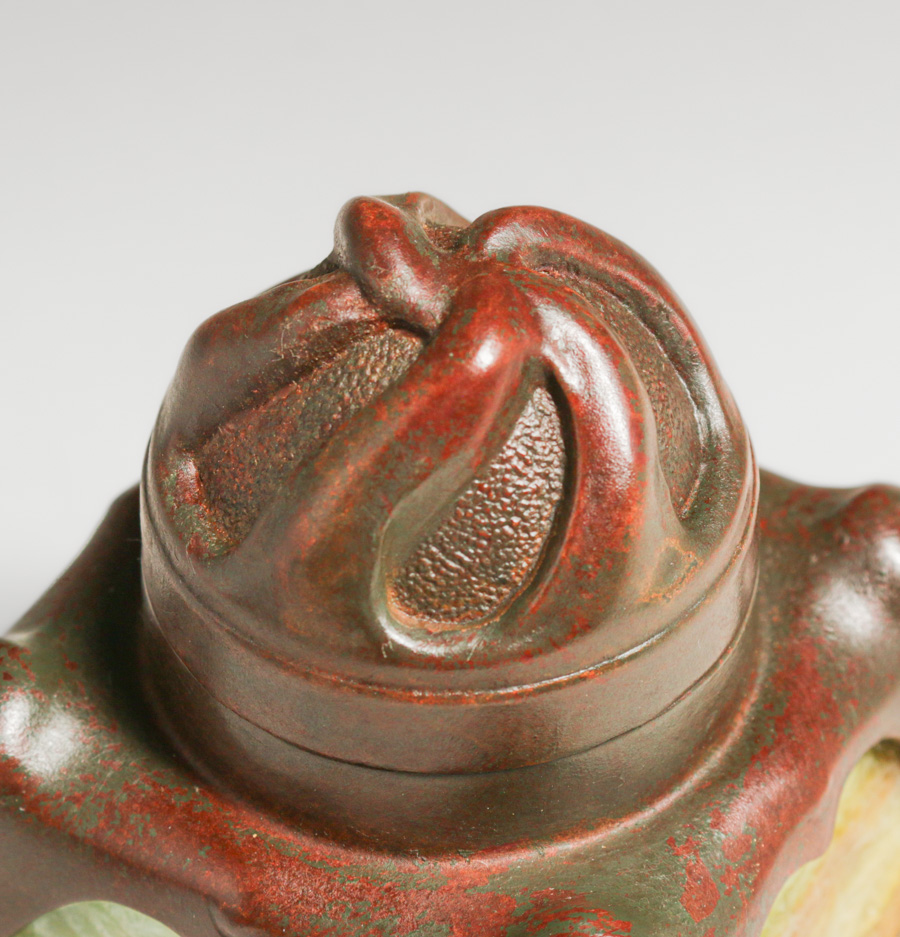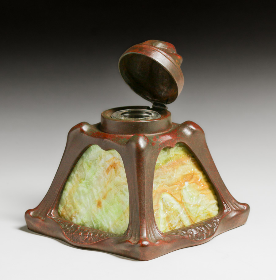 Art Nouveau Bronze & Slag Glass Inkwell c1900s