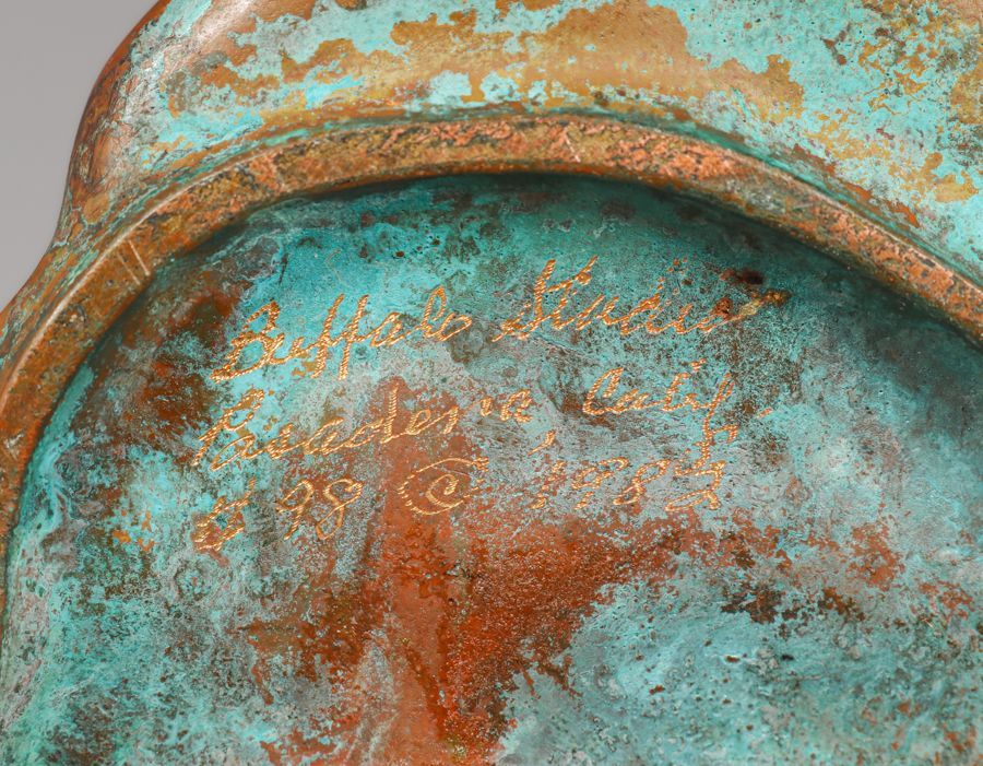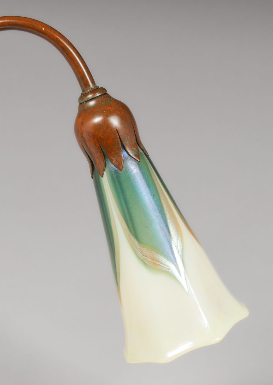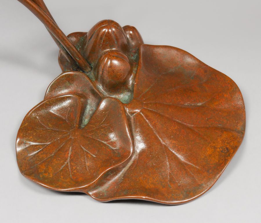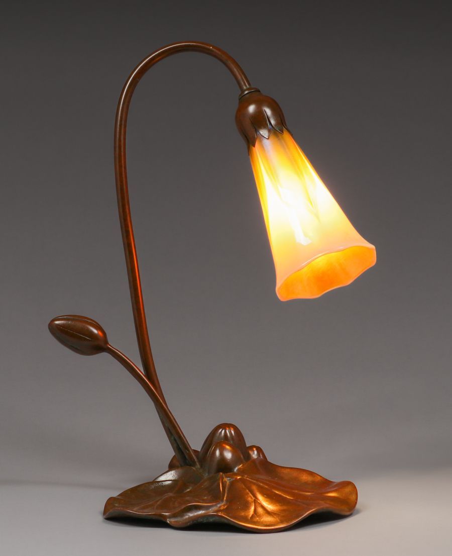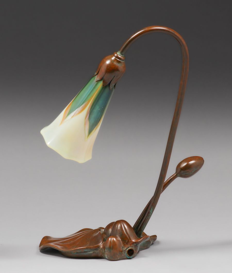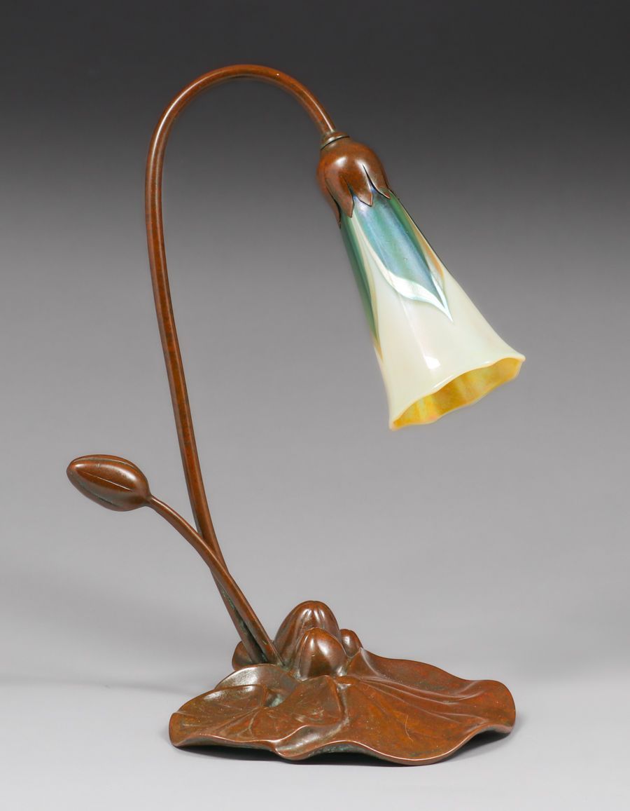 Buffalo Studios Bronze Art Nouveau Tiffany Style Lamp 1982. Signed. Perfect condition. Excellent original patina. 12"h x 8"w. Base 6"d SOLD