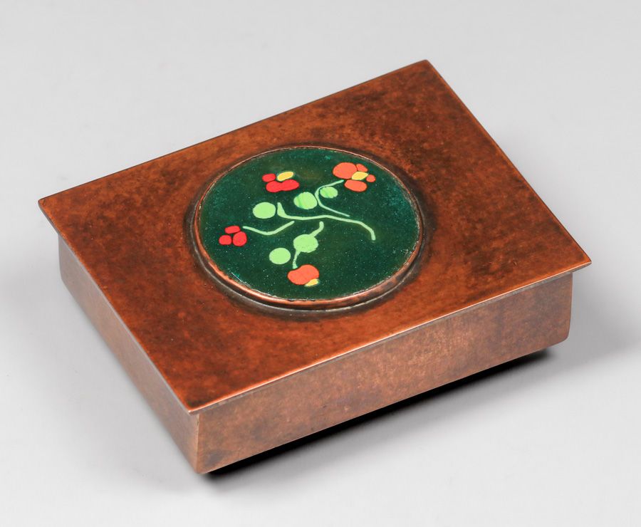 - Agatha van Erp Student Hammered Copper & Enamel Box c1950s
