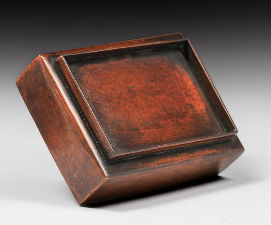 Agatha van Erp Student Hammered Copper & Enamel Box c1950s. Signed "Vera" and what appears to be the Dirk van Erp studio's HANDWROUGHT stamp. Excellent new patina. 4 1/8"w x 3"d x 1.25"h $950