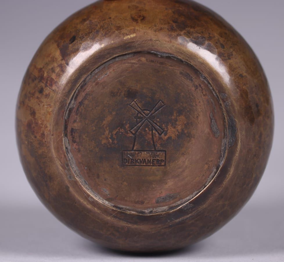 - Dirk van Erp Hammered Brass Cabinet Vase c1911-1912