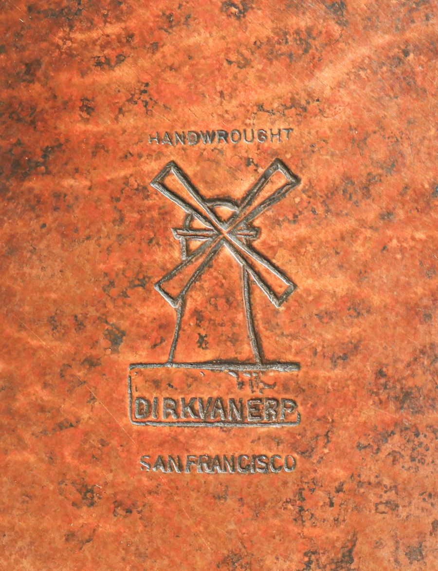 Dirk van Erp Hammered Brass Candlesticks c1930s. Signed with open-box, San Francisco, Handwrought mark. Excellent new patina. 8"d x 3.25"h $1500 pair