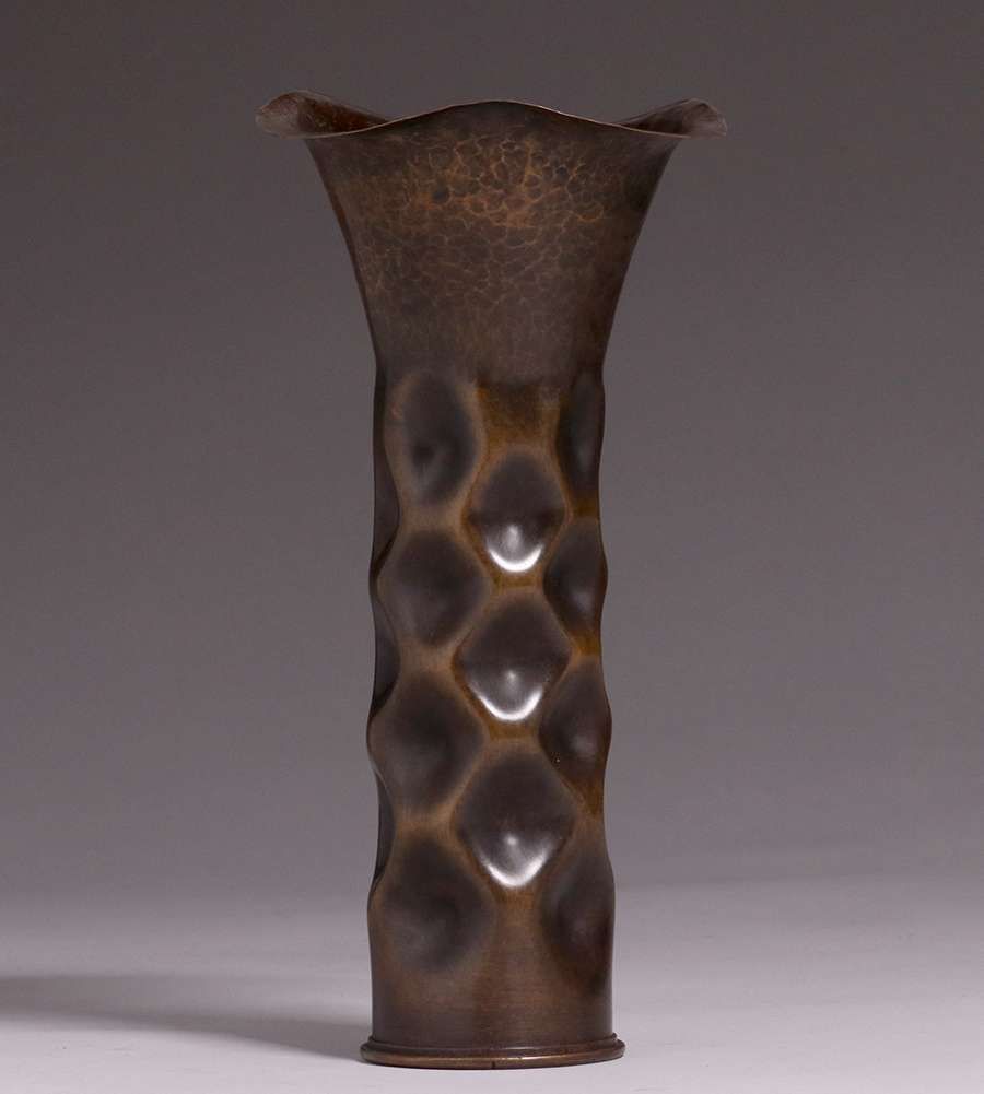 - Dirk van Erp Hammered Brass Dimpled Shell Casing Vase c1904-1908
