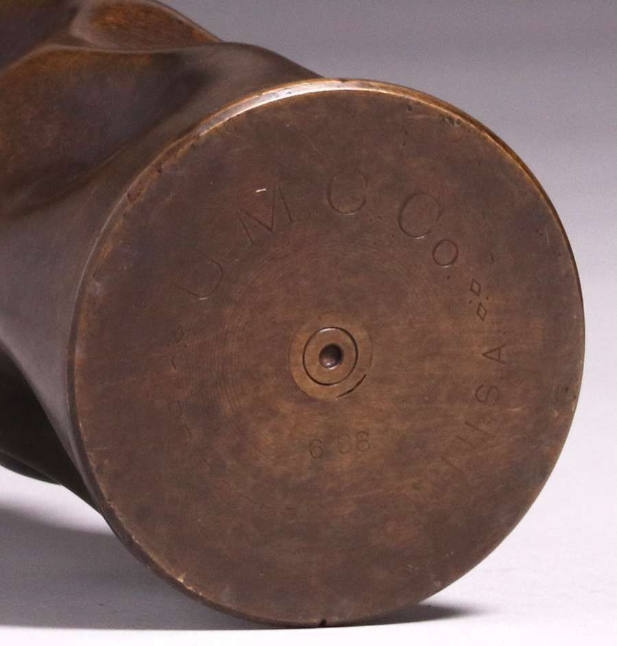 Dirk van Erp Hammered Brass Dimpled Shell Casing Vase c1904-1908. Marked "UMC Co 6-98". Excellent new patina. 10.5"h x 5.25"d SOLD