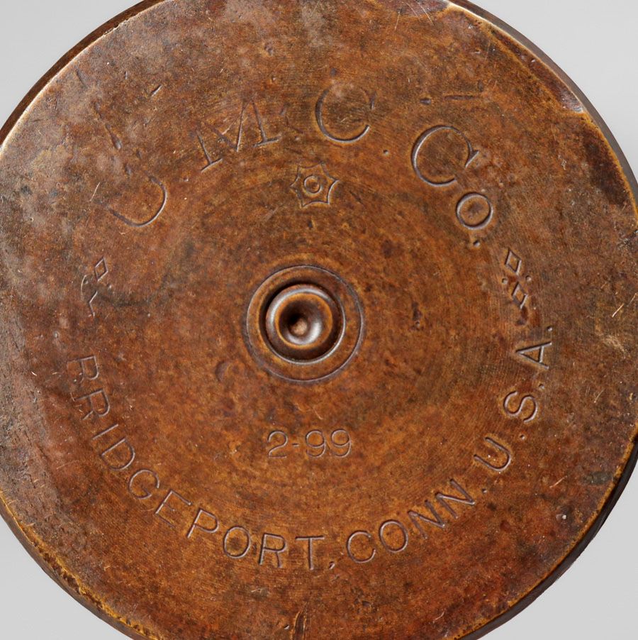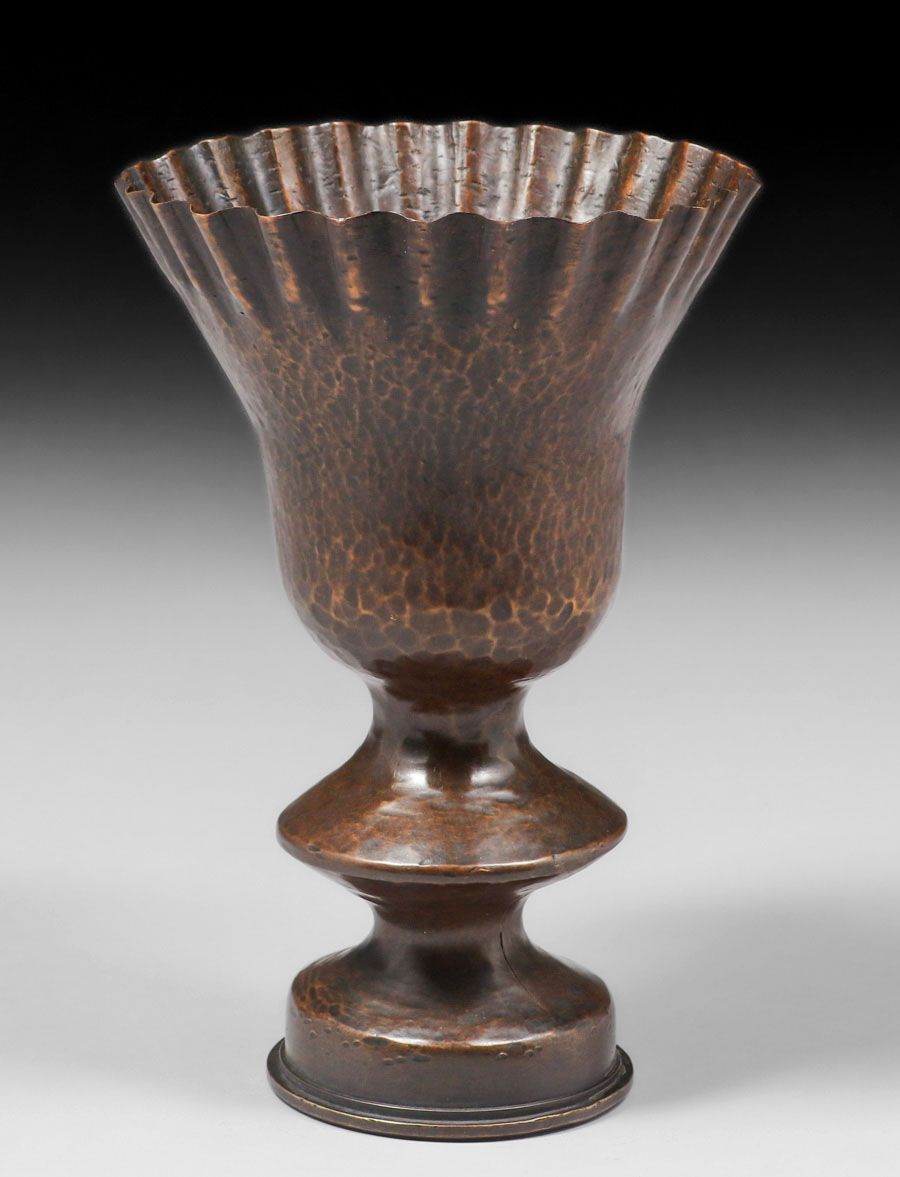 Dirk van Erp Hammered Brass Shell Casing c190-1908. Signed with the “UMC Co” munitions mark and the manufacture date “2-99”. Excellent new patina. 7.5″h x 5″d SOLD