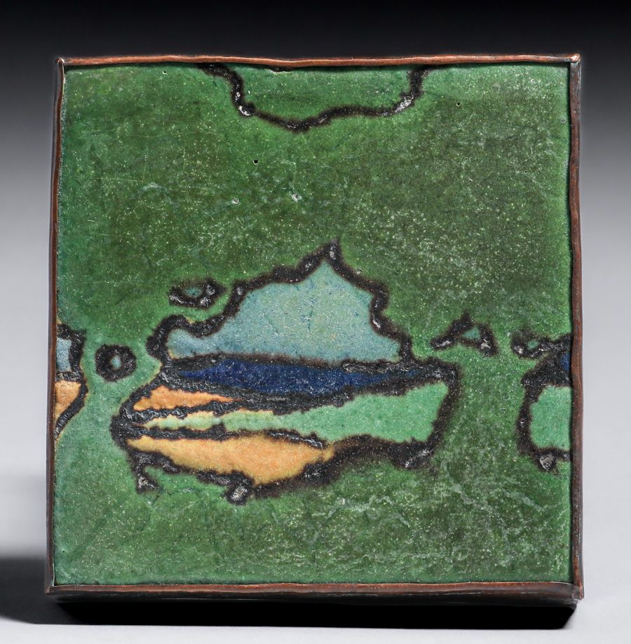 - Dirk van Erp Hammered Copper Framed Grueby Tile c1910