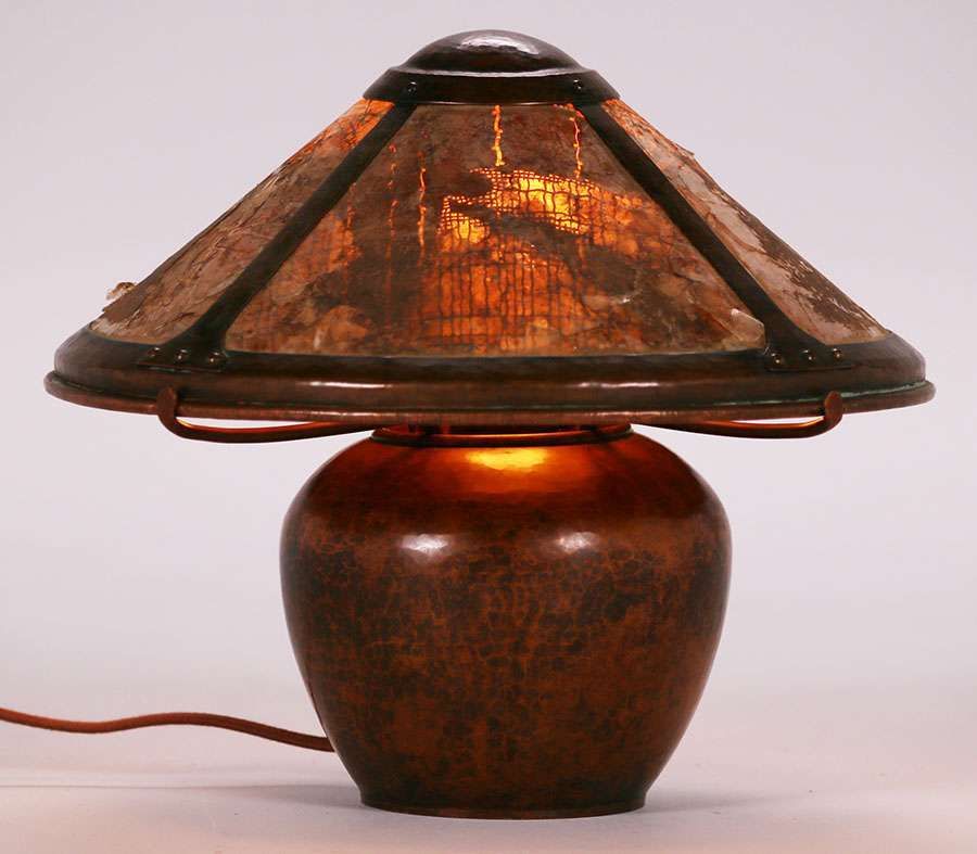 - Dirk van Erp Hammered Copper & Mica Boudoir Lamp
