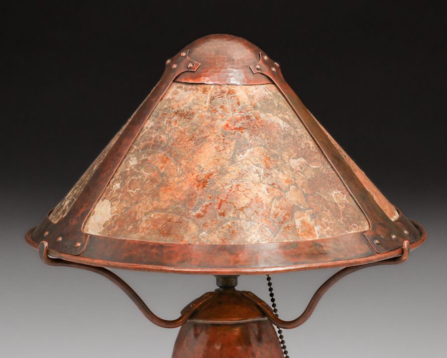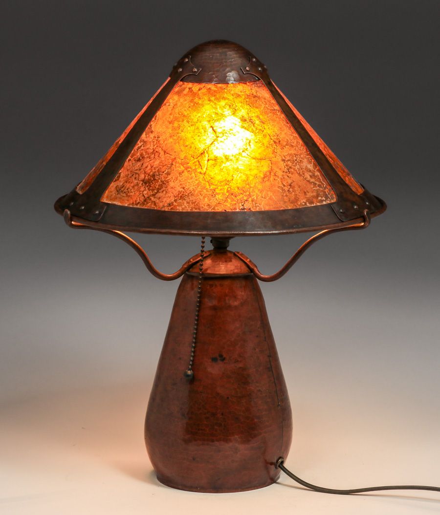 - Dirk van Erp Hammered Copper & Mica Boudoir Lamp c1911-1912