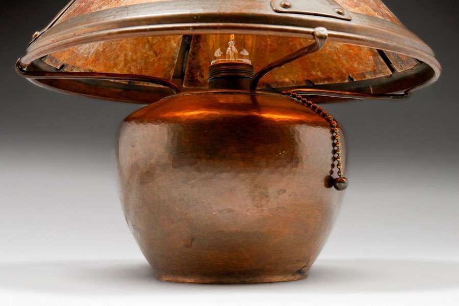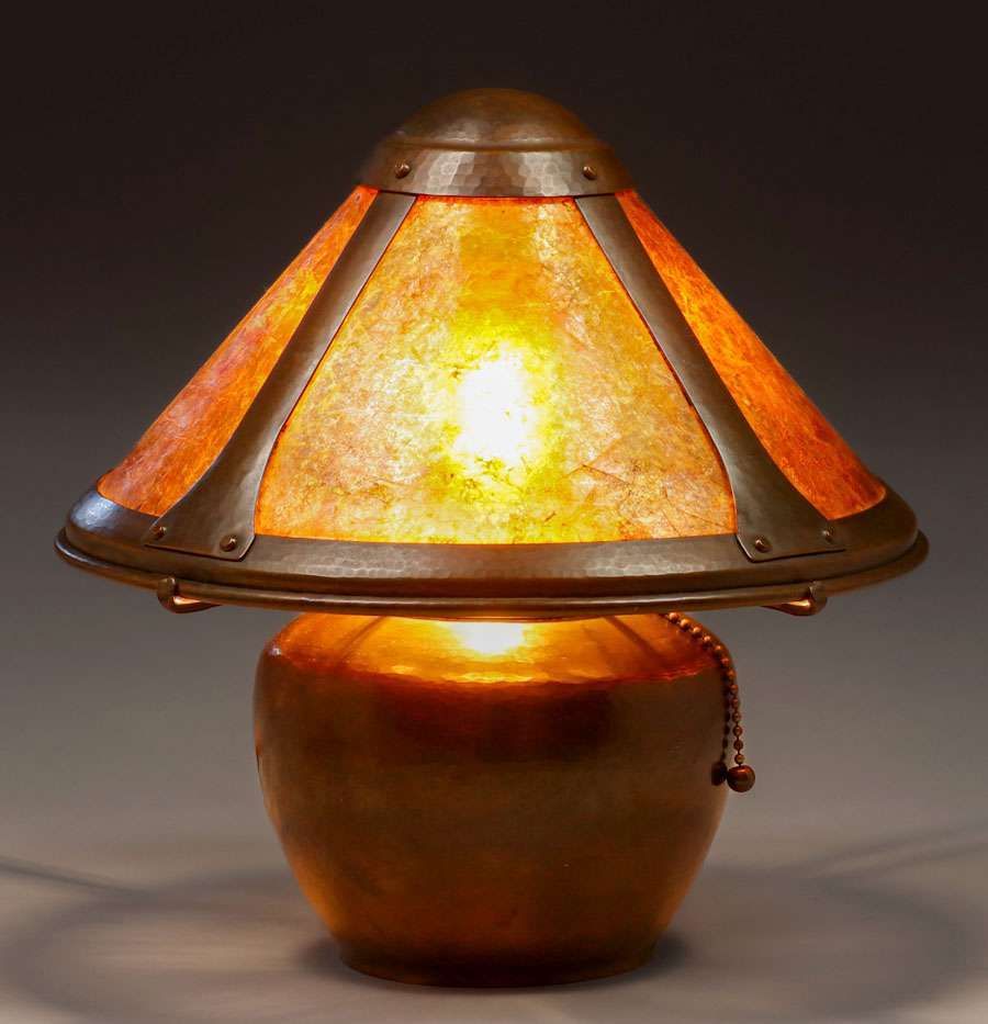 - Dirk van Erp Hammered Copper & Mica Boudoir Lamp c1915-1925